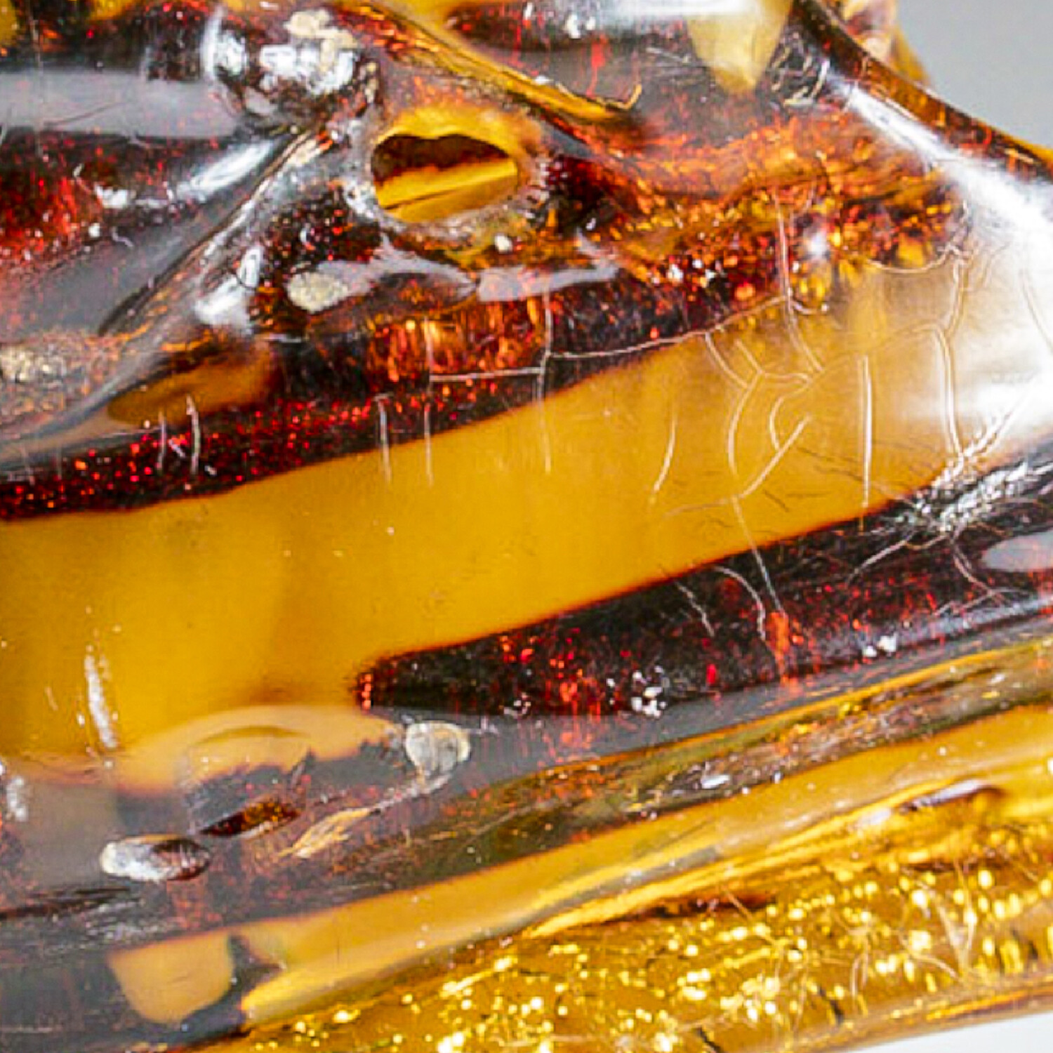 This transparent specimen of natural Colombian amber is polished to highlight its interior clarity and comprises some of the finest quality amber globally. Amber is prehistoric tree sap that has been fossilized. This solid specimen displays beautiful cognac-orange coloring, as well as some organic material. Additionally, its hard texture renders it robust and therefore optimal for carving and wearing as jewelry. Amber helps remove energy blockage, strengthens physical body.