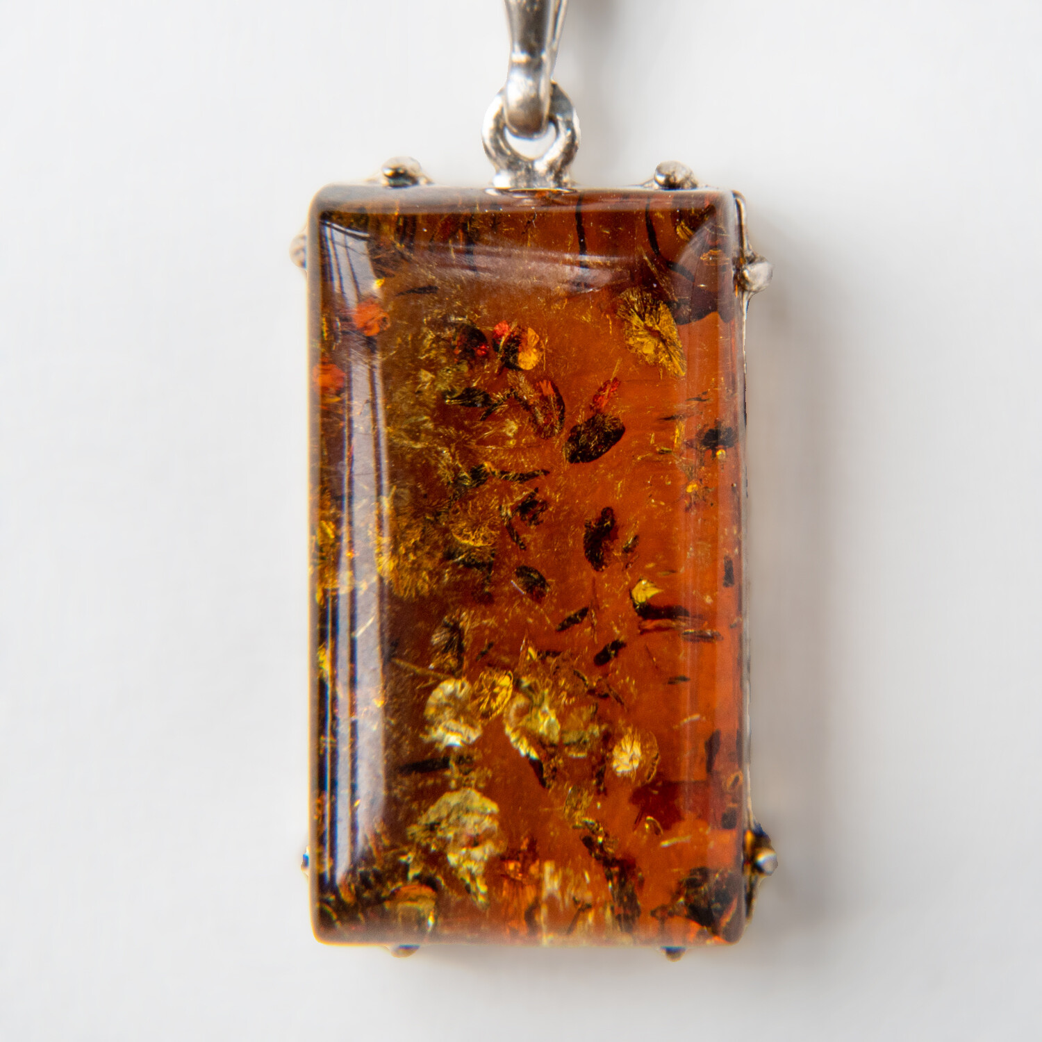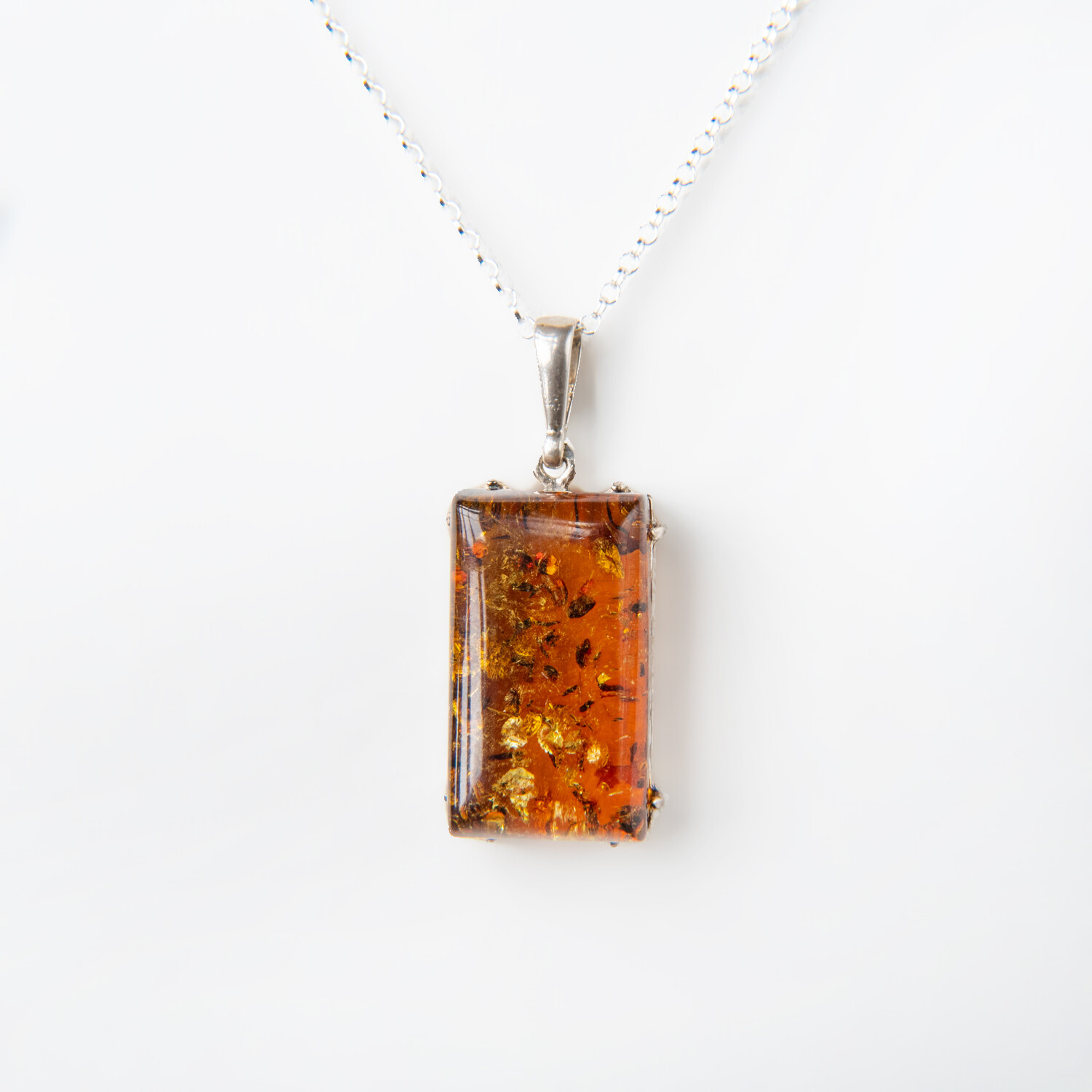 Genuine Polished Amber Rectangular Pendant with 18" Sterling Silver Chain // v.1