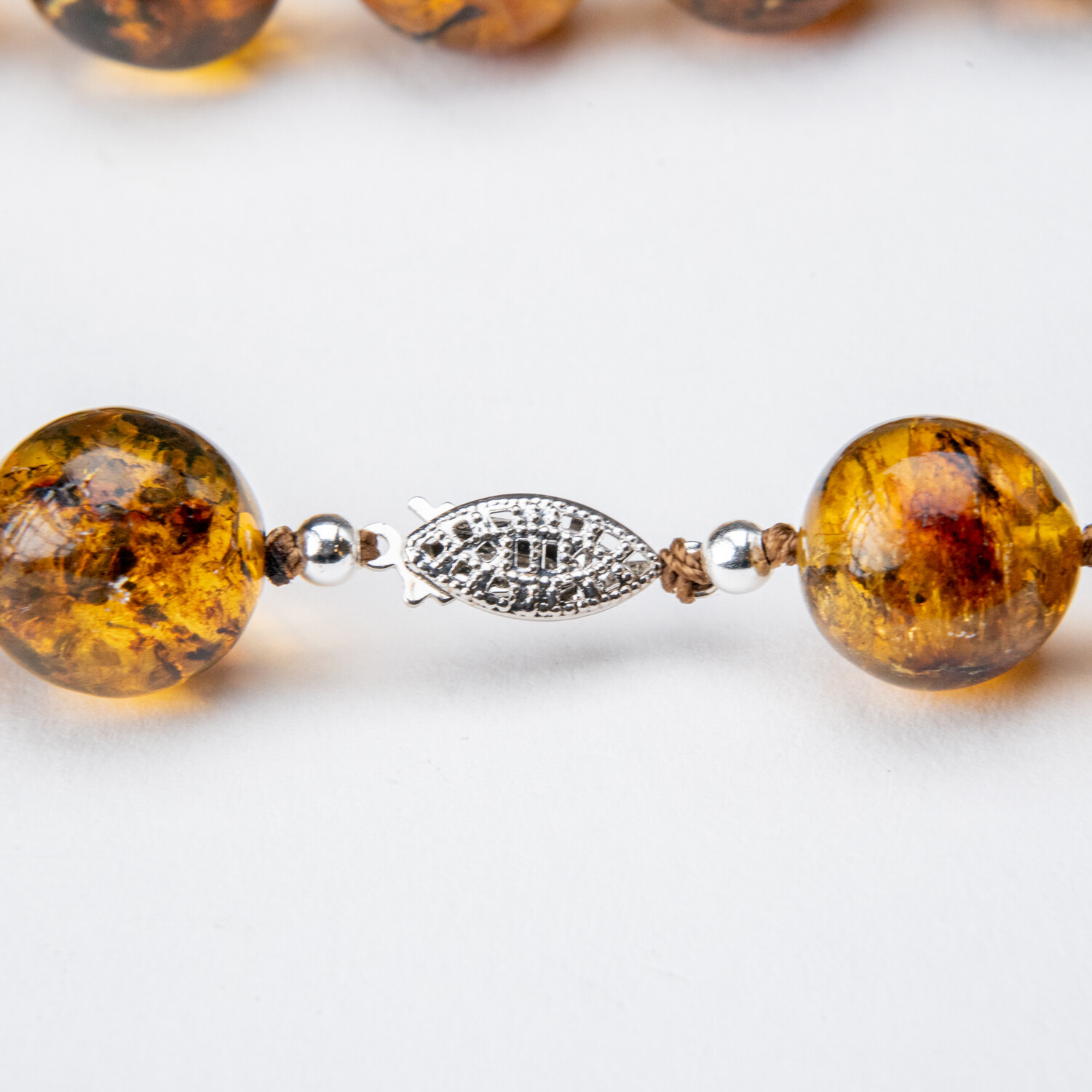 Genuine Polished Golden Amber Beaded Necklace // 15mm Beads