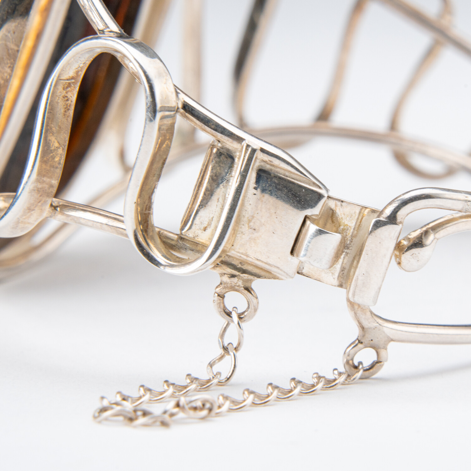Genuine Sterling Silver and Golden Amber Bangle Bracelet // v.3
