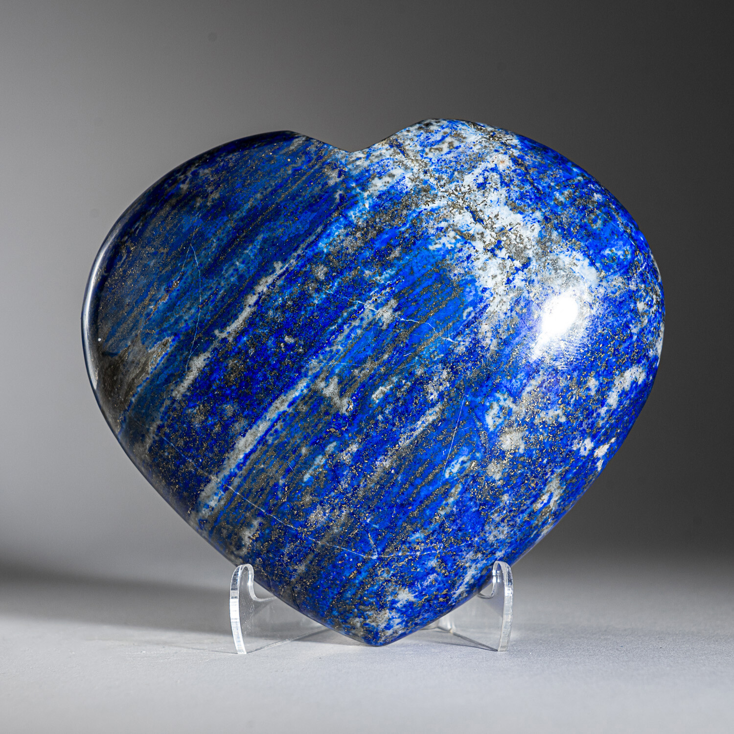 Beautiful, large heart of AAA quality natural Afghani lapis lazuli. This specimen has rich, electric-royal blue color enriched with scintillating pyrite microcrystals.