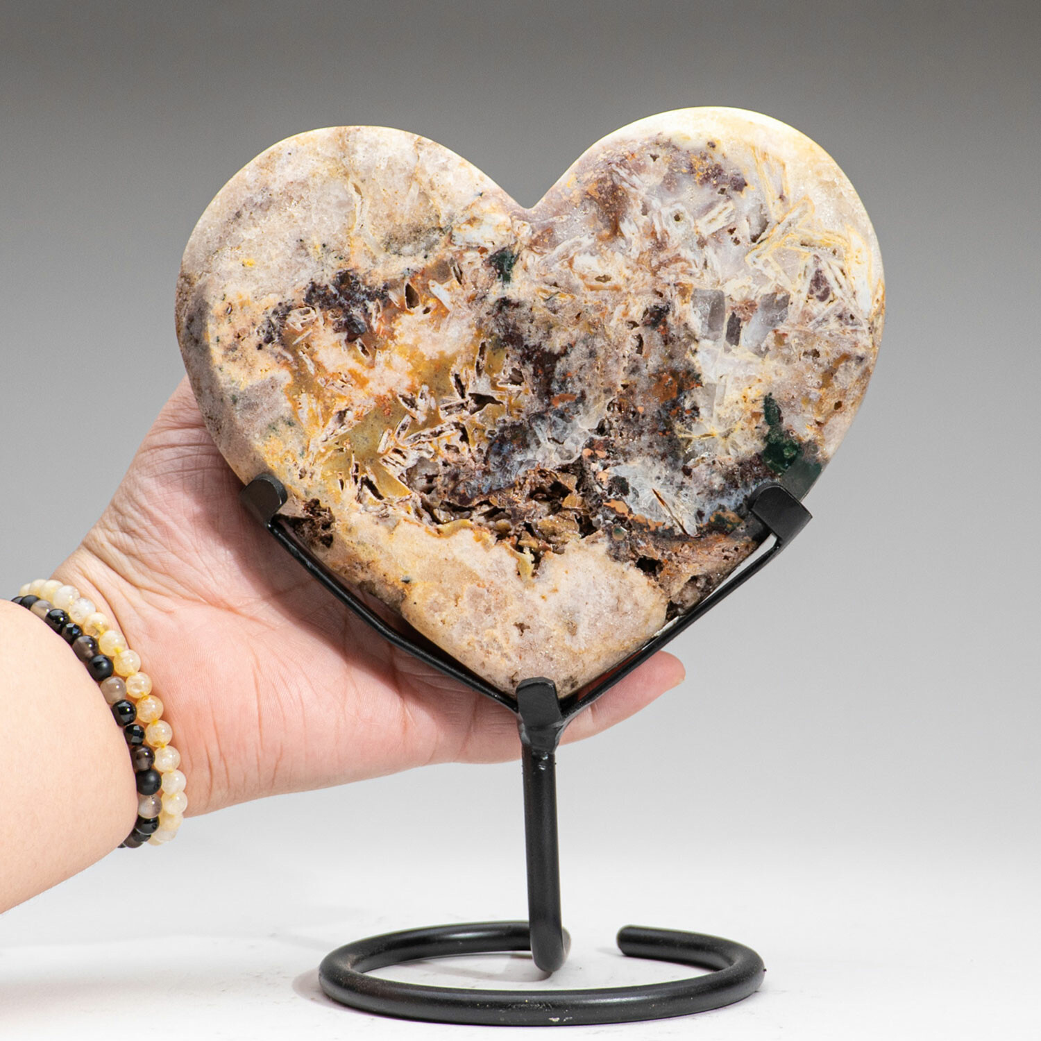 Genuine Crazy Lace Agate Heart on Metal Stand