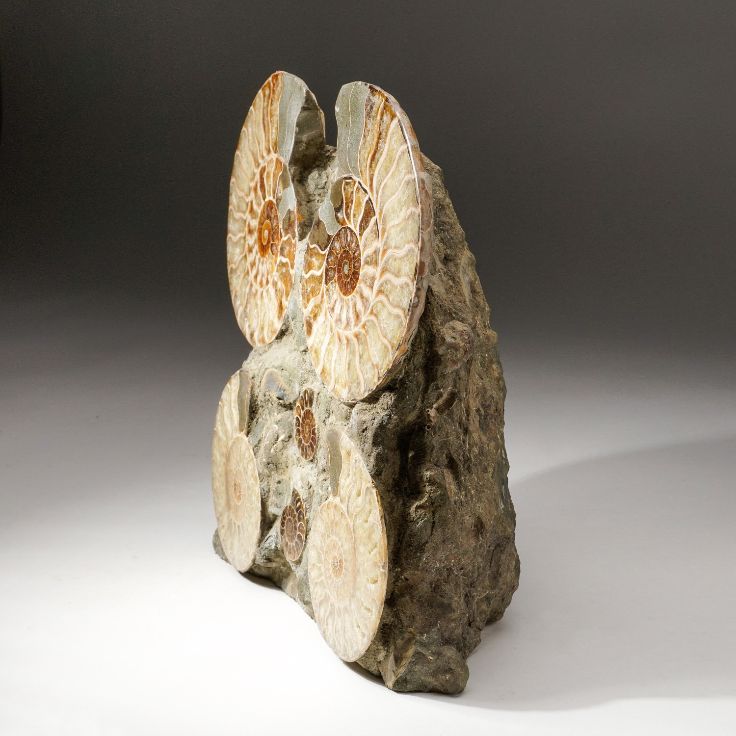 Genuine Polished Calcified Ammonite Halves Cluster