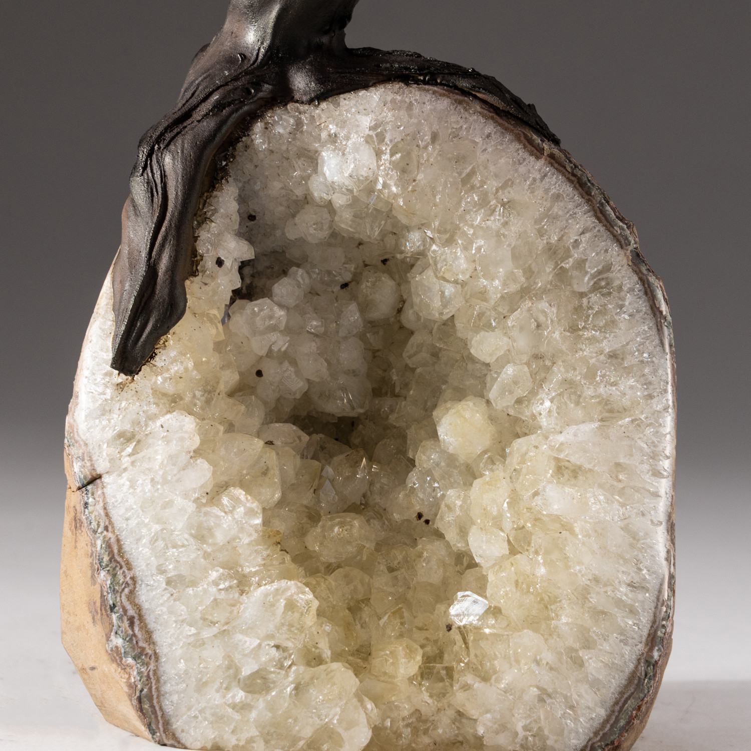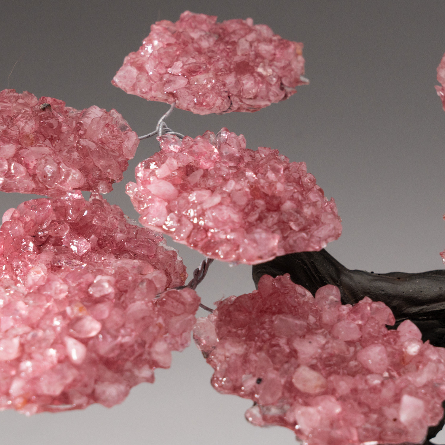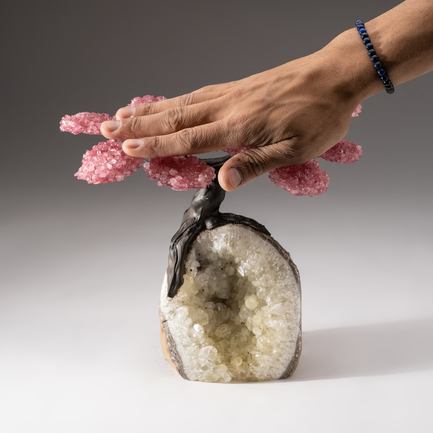 The Wellness Tree is a genuine Rose Quartz clustered gemstone tree with faux tree trunk set on a Quartz crystal matrix. Individually handcrafted, this stunning art piece adds natural beauty to any space.