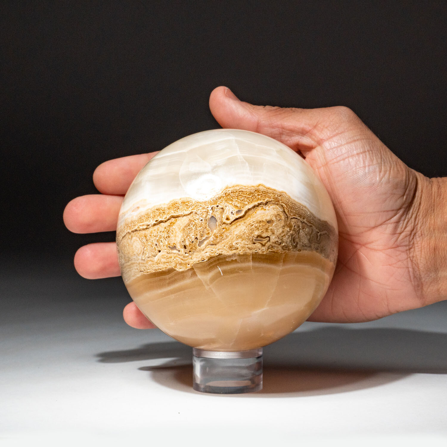 This large, beautifully polished, AAA-quality Mexican Onyx Sphere has amazing, defined bands and patterns with vibrant hues of honey browns.