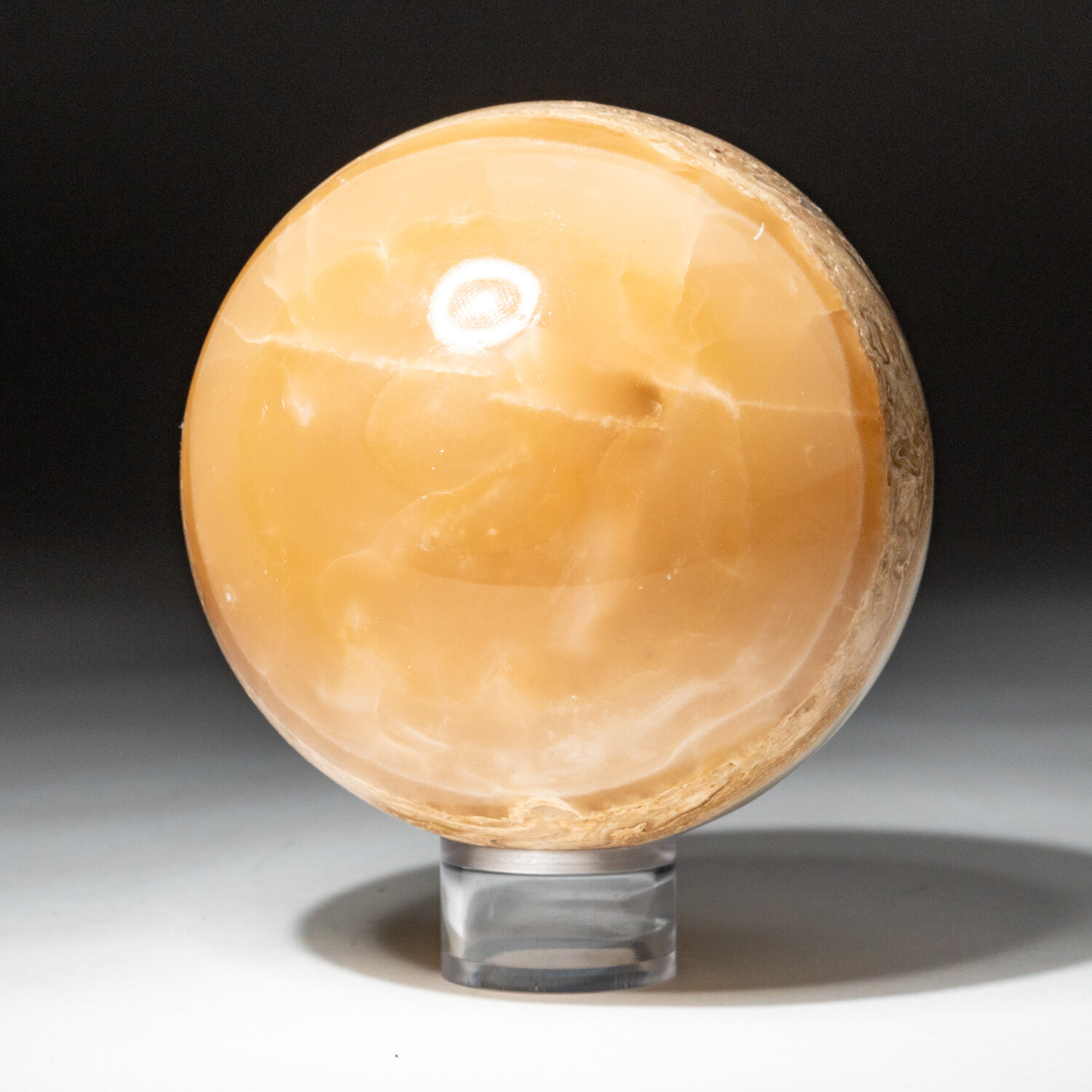 Genuine Polished Honey Onyx Sphere + Acrylic Display Stand