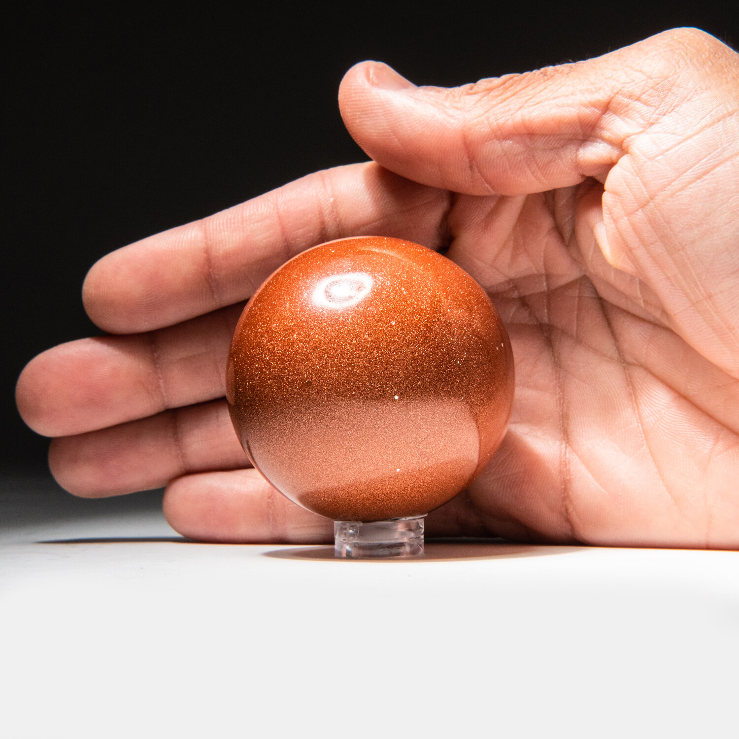 Genuine Polished Red Goldstone Sphere + Acrylic Display Stand // V1