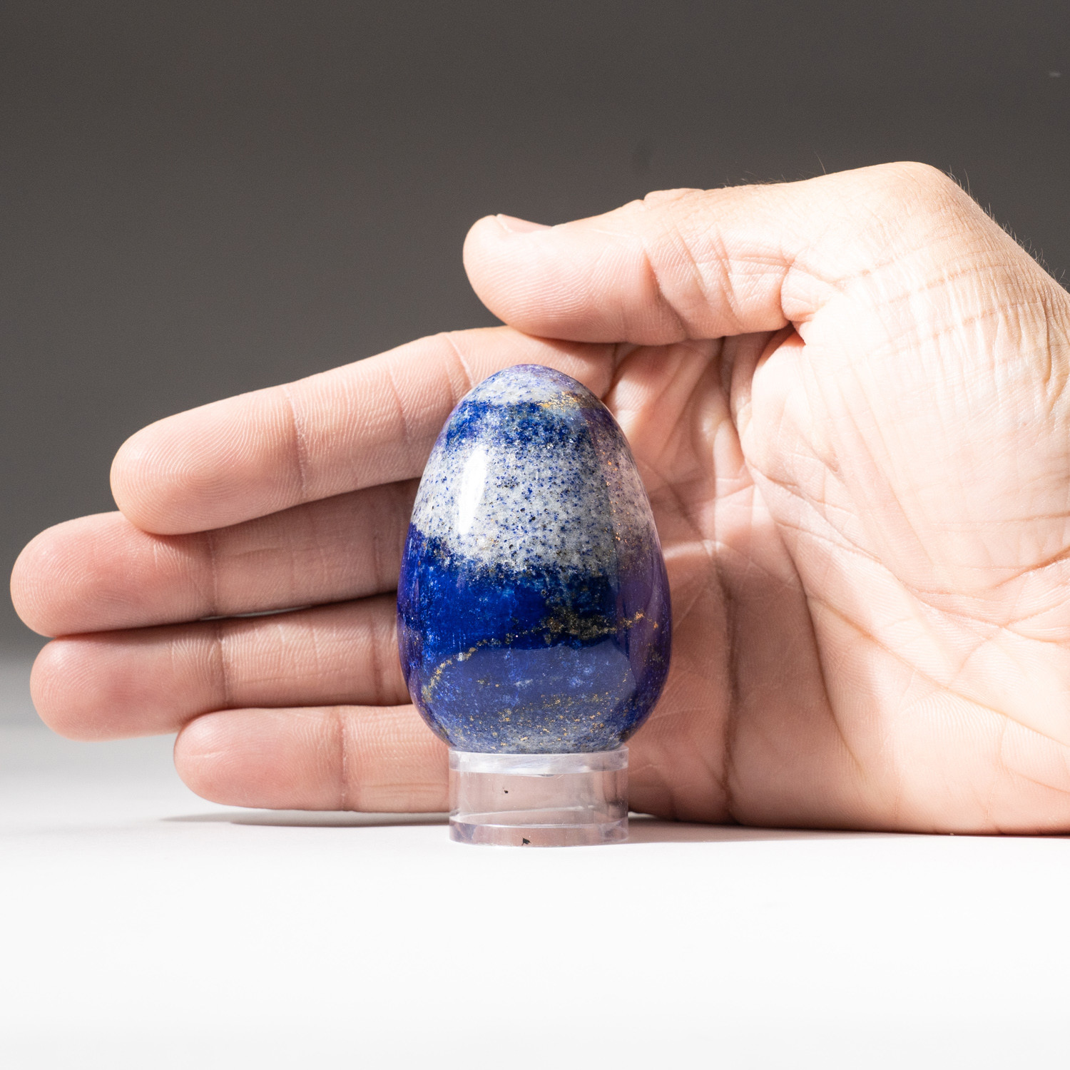 Polished Lapis Lazuli Egg + Acrylic Display Stand V2