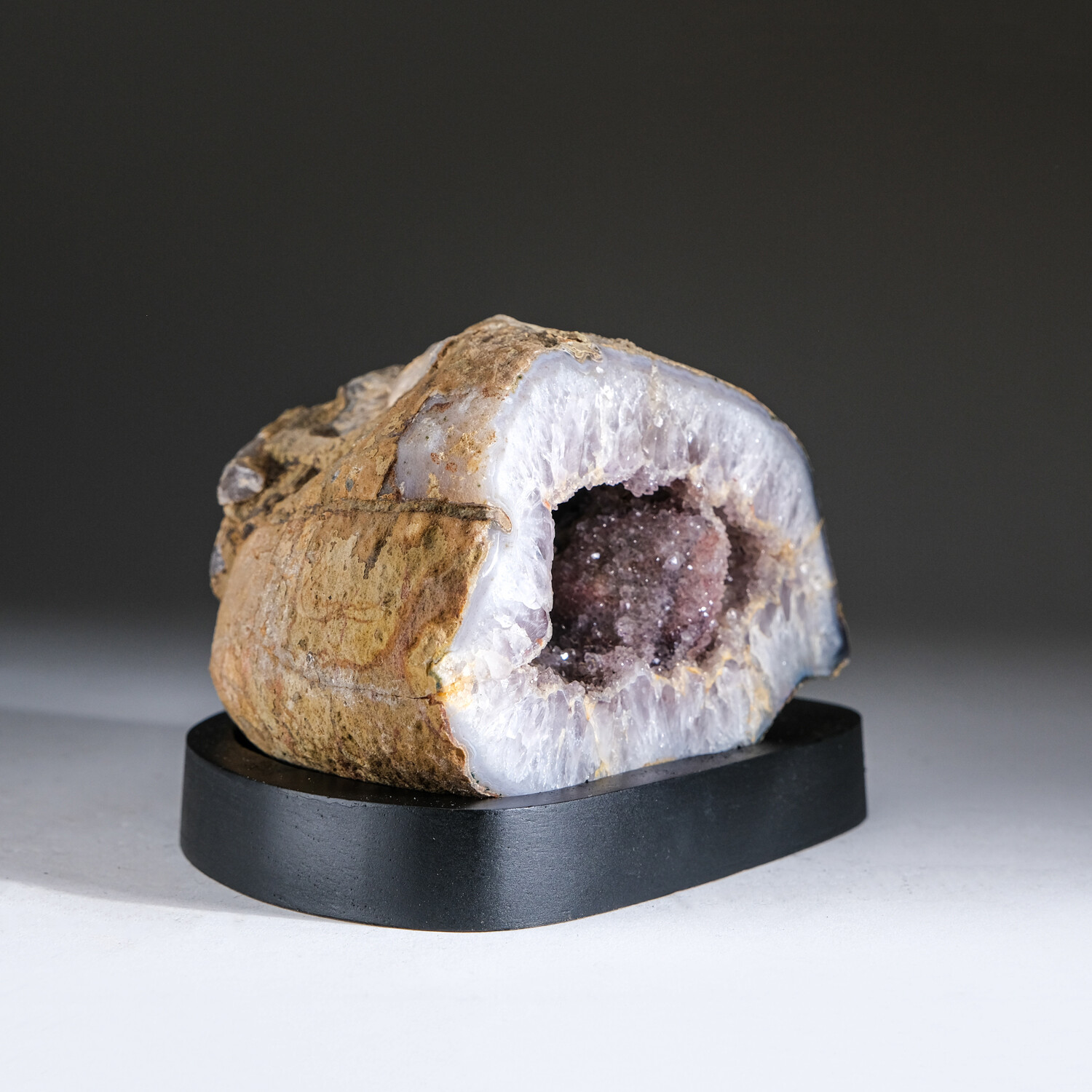 Genuine Banded Agate Geode on Wooden Stand From Brazil