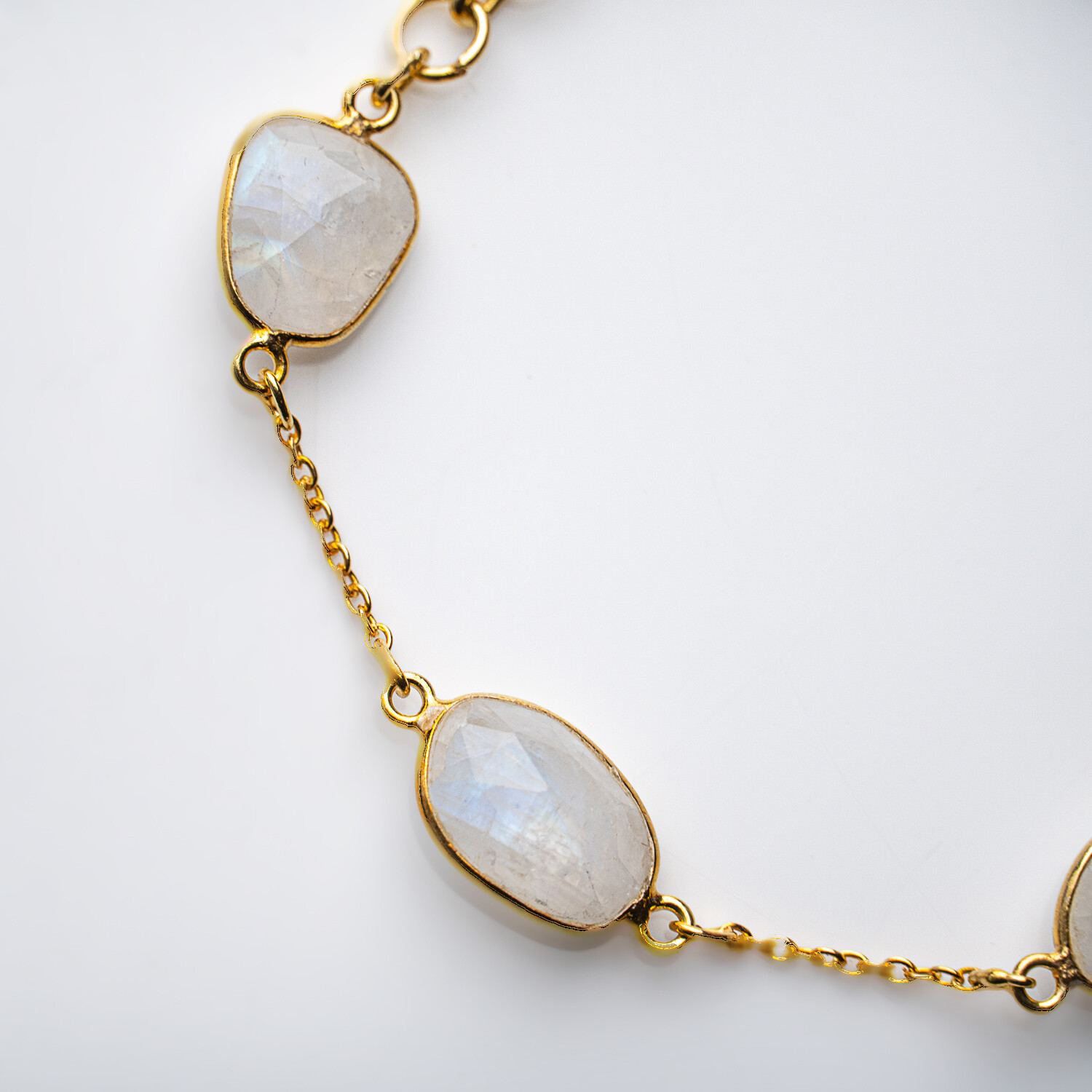 Genuine Blue Moonstone Cabochon Stone Bracelet Set In Sterling Silver // 14K Gold Wash