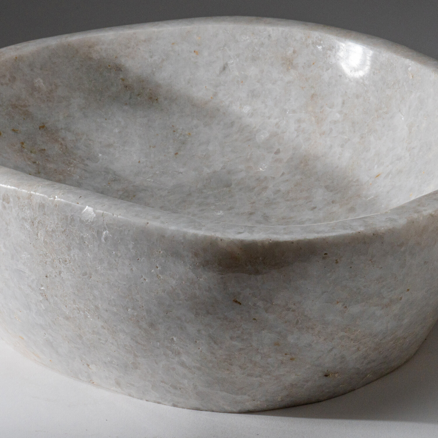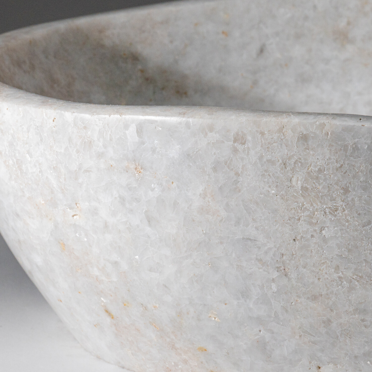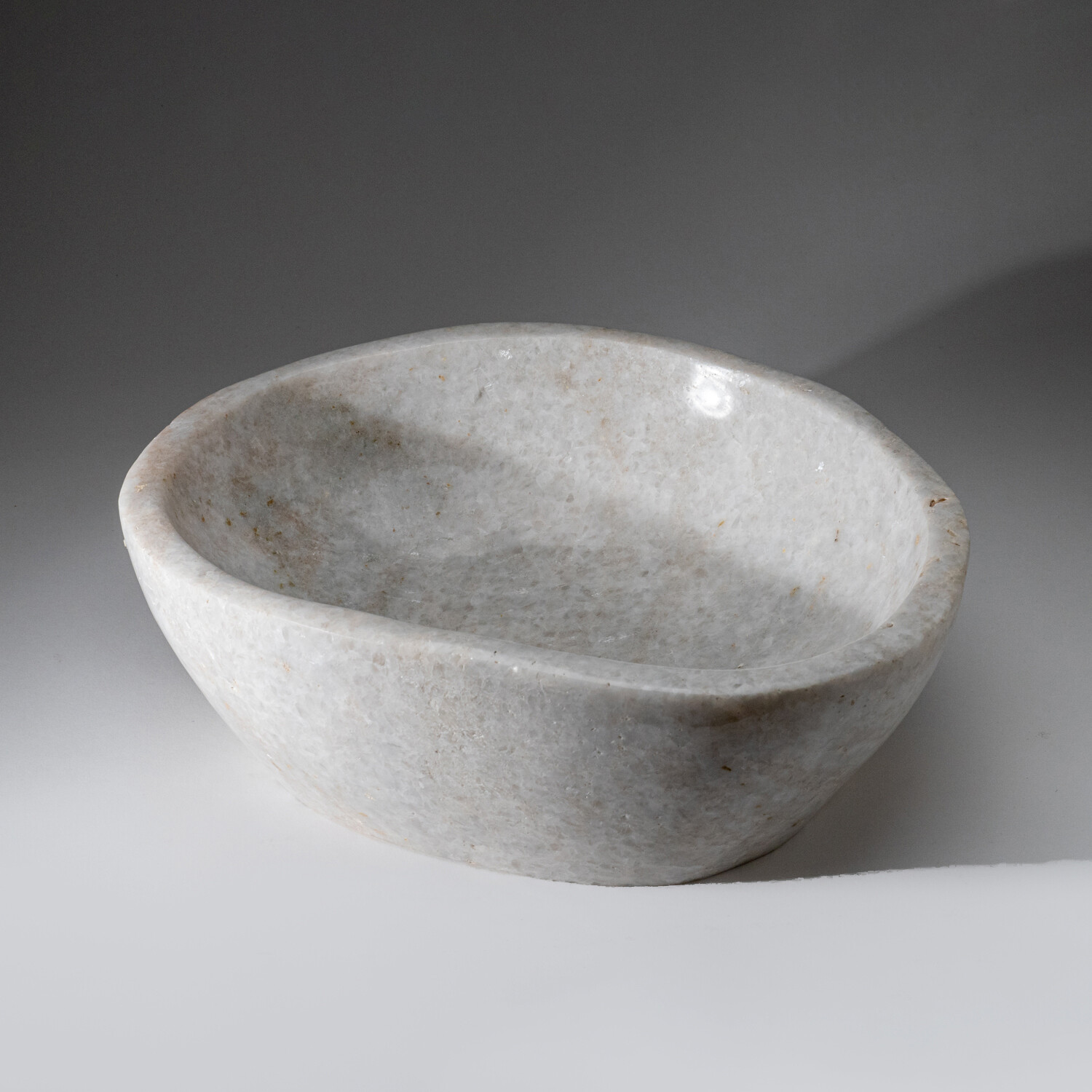 A beautiful handmade bowl carved and hand polished from a solid piece of Snow Quartz. This beautiful snow quartz bowl is from Brazil.