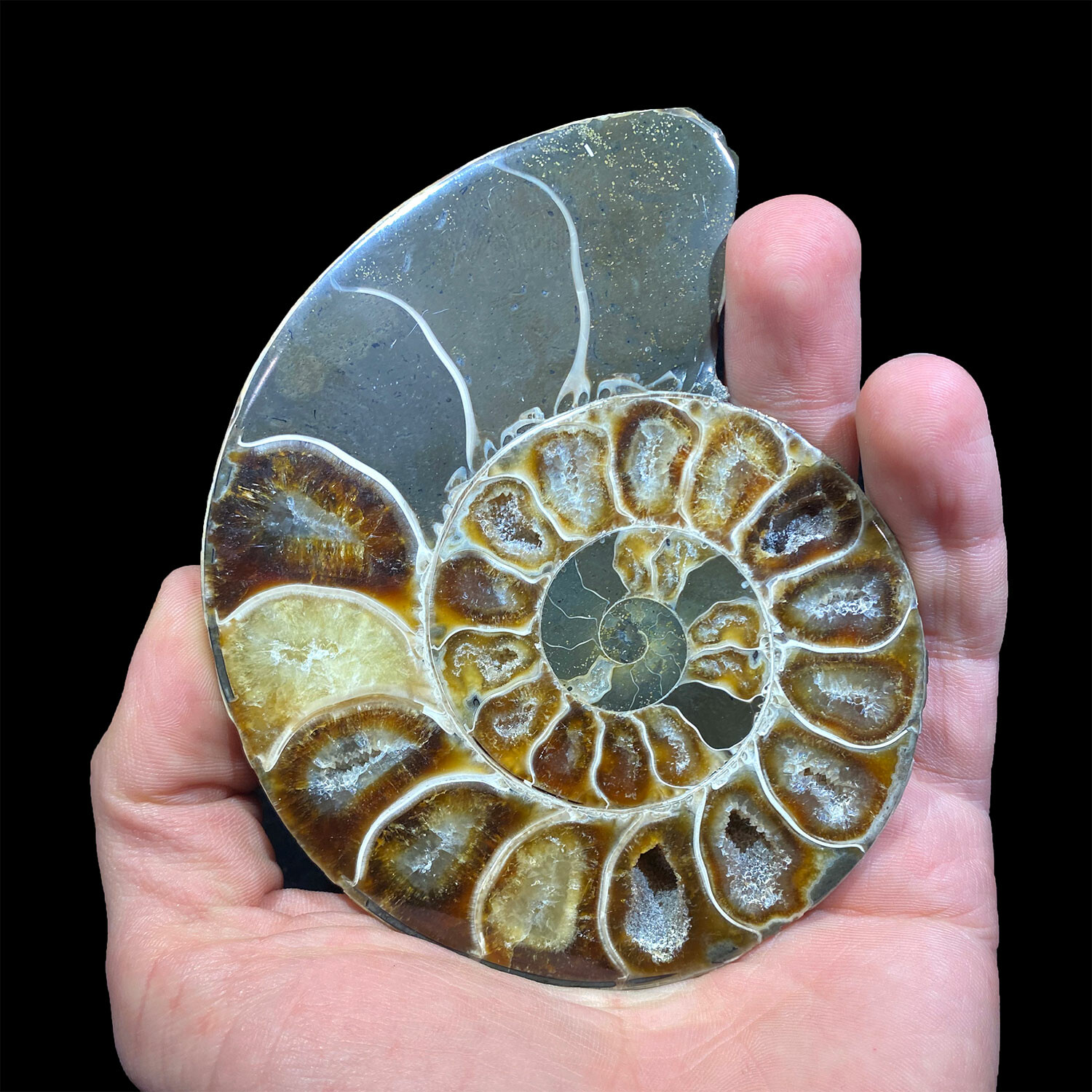Madagascar Ammonites are known for their beauty when polished. They are often cut in half and polished to show the colorful chambers and septa. These are not fossils to be put in a box or drawer—the exceptional beauty begs to be put on display.
