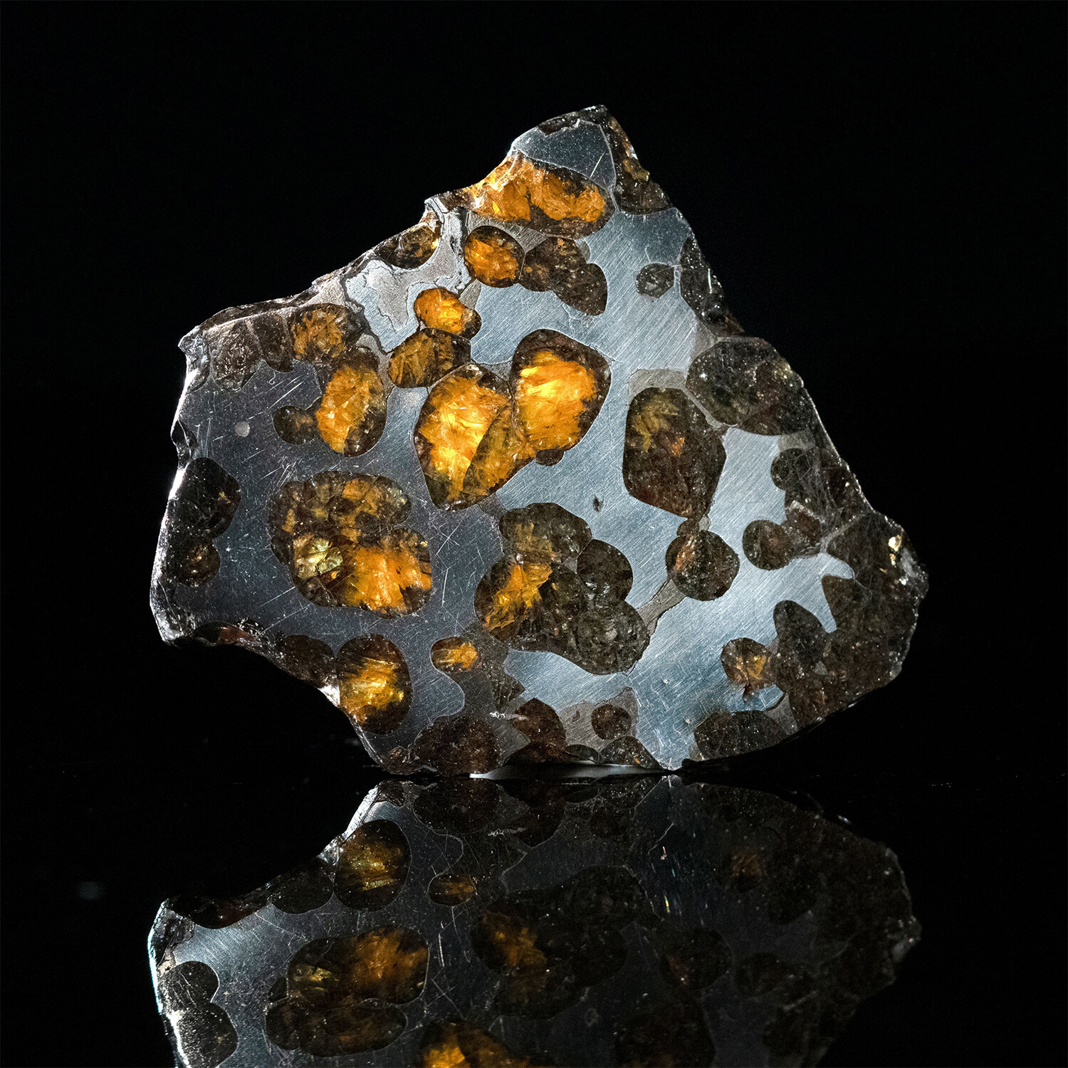 The Brenham meteorite is a pallasite meteorite found in Kansas in 1882. It is one of only a few pallasite meteorites, a type of meteorite which features beautiful green olivine crystals growing within a coarse octahedrite stony-iron pattern. Coveted by collectors, pieces with a high olivine content especially are few and far between. This slice is a wonderful addition to any meteorite or mineral collection.