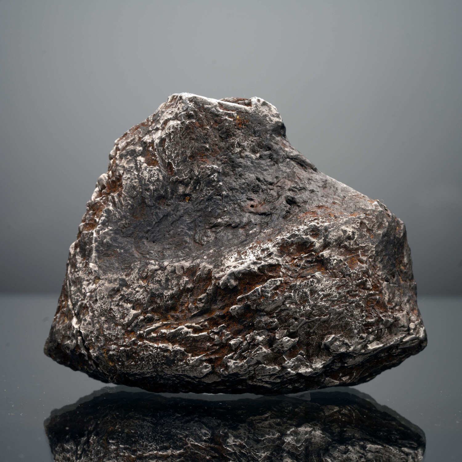 This specimen is one of a recent find at the mountainside away from the original strewn field and is what is known to collectors as a "New Campo." The new location has no standing water, making these meteorites much more stable than the earlier finds. This is a Group IA iron meteorite classed as a coarse octahedrite. On average, the composition is 92.5% iron and 6.68% nickel, with many different trace elements. Are a number of scarce minerals are in it as well, including kamacite, taenite, plessite, triolite, graphite, and silicates.