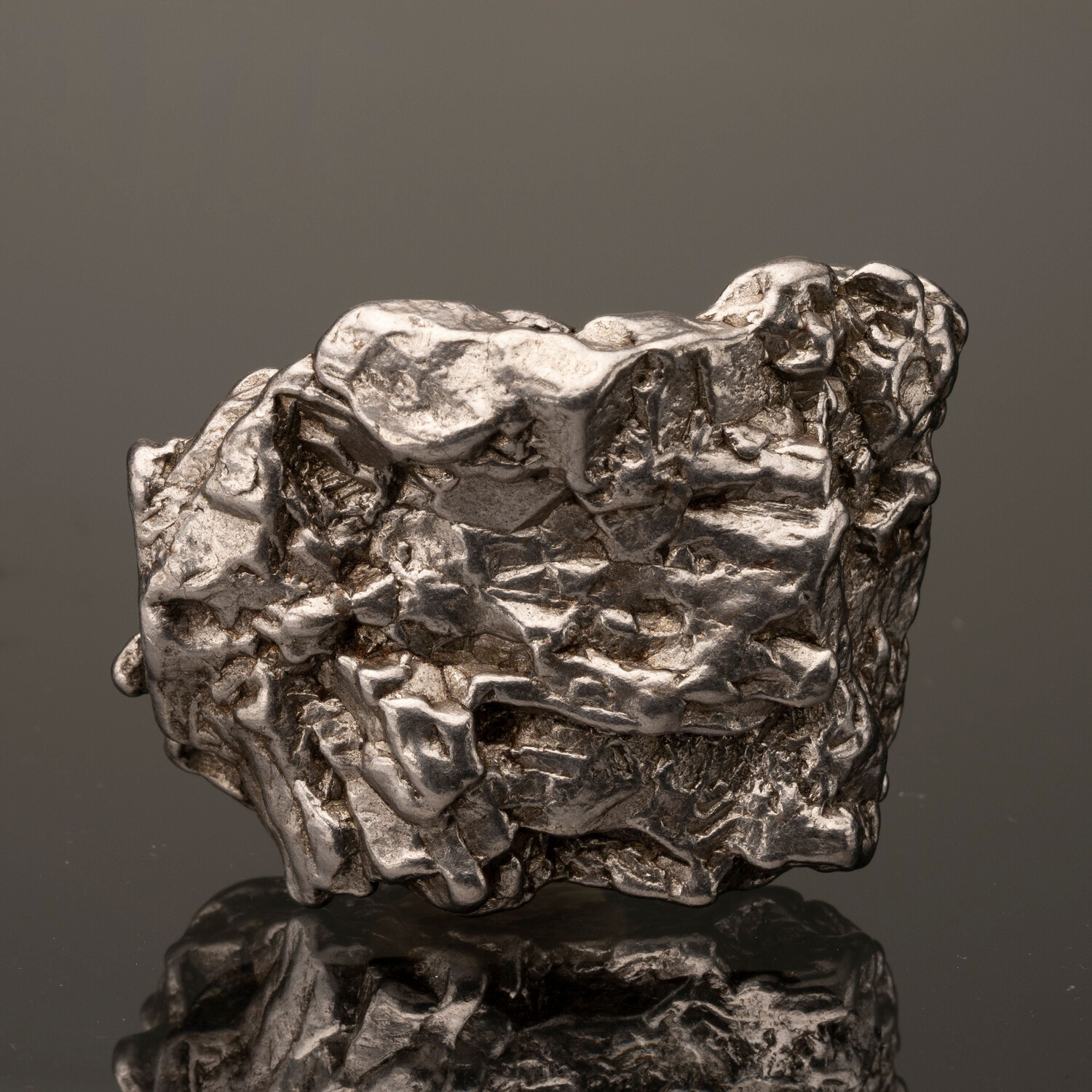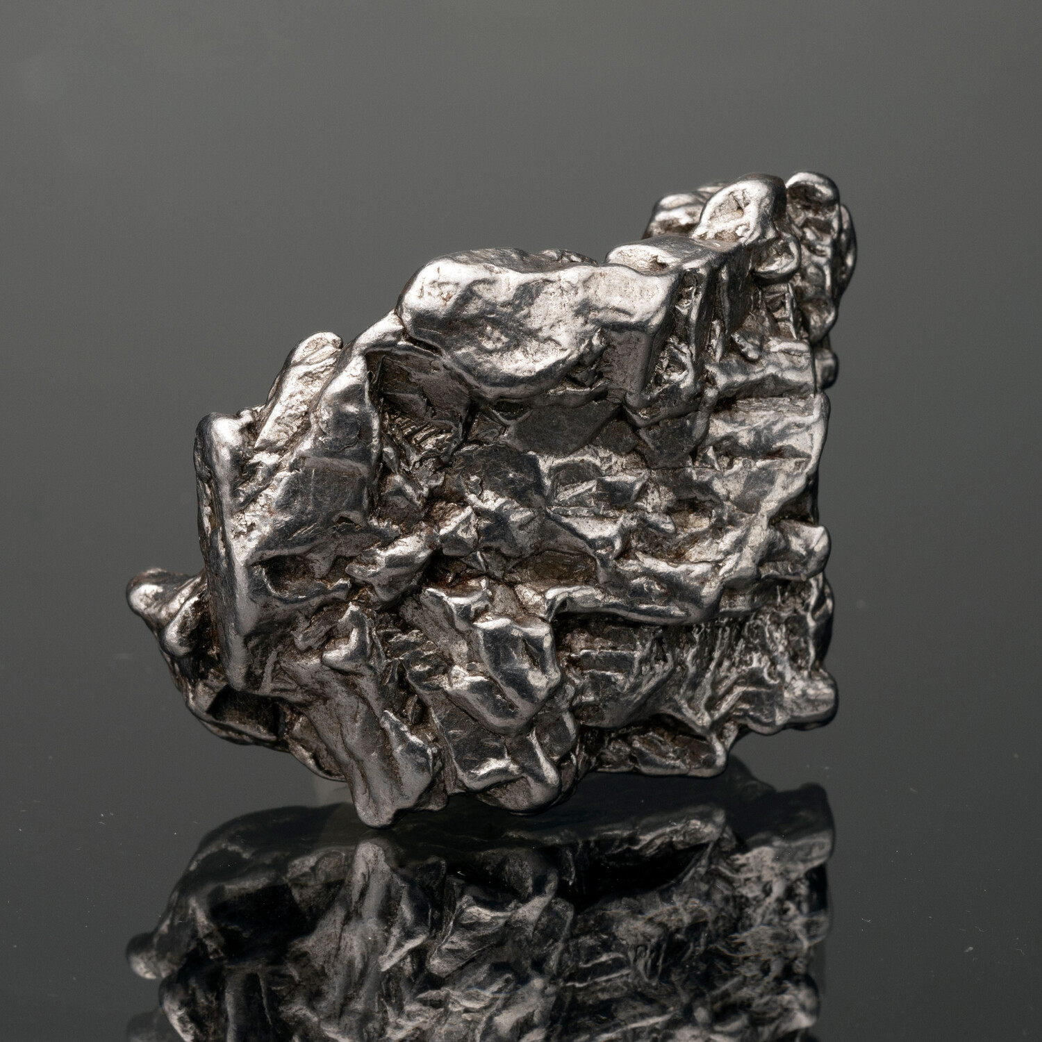 This specimen is one of a recent find at the mountainside away from the original strewn field and is what is known to collectors as a "New Campo." The new location has no standing water, making these meteorites much more stable than the earlier finds. This is a Group IA iron meteorite classed as a coarse octahedrite. On average, the composition is 92.5% iron and 6.68% nickel, with many different trace elements. Are a number of scarce minerals are in it as well, including kamacite, taenite, plessite, triolite, graphite, and silicates.