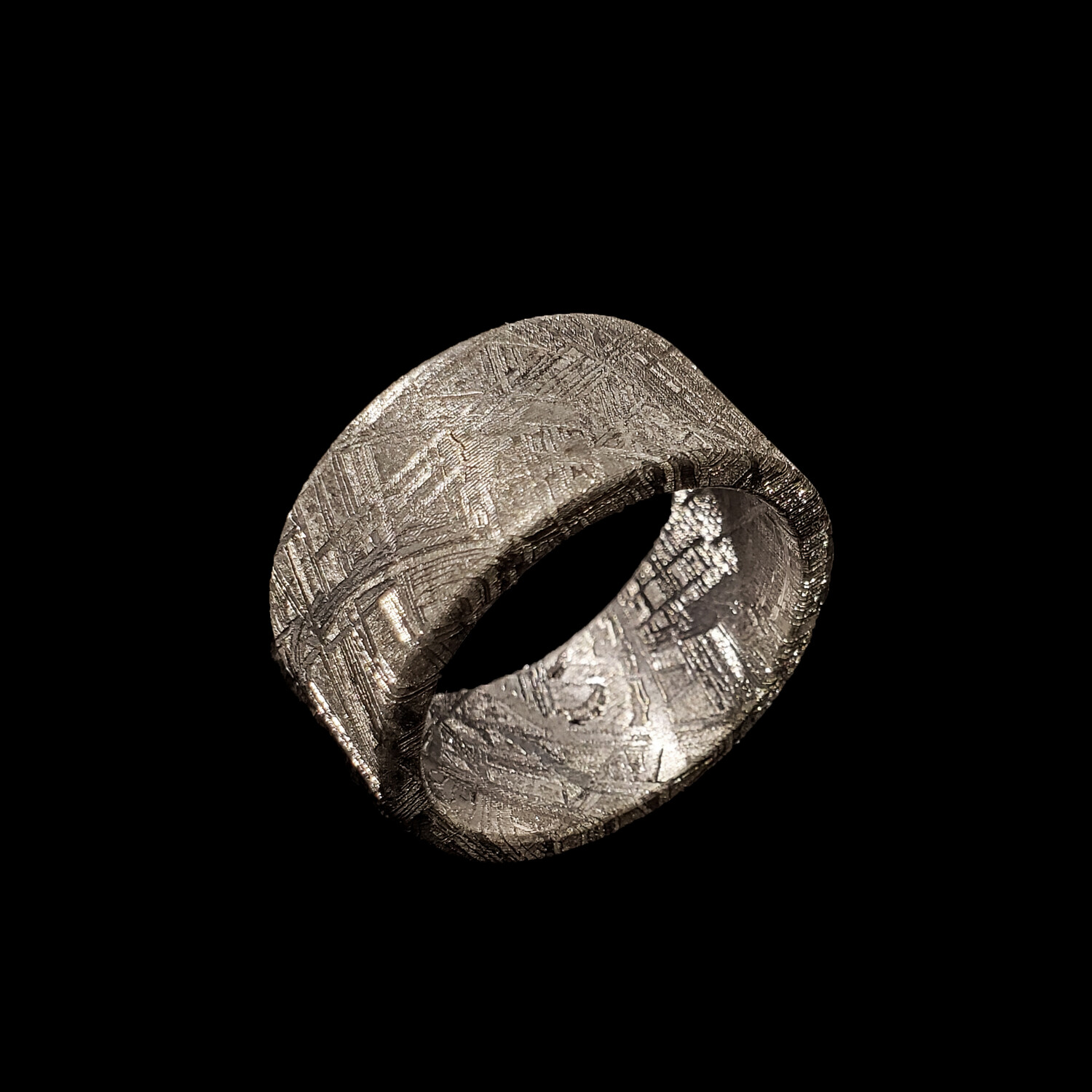 Carry a piece of outer space with you everywhere with this Muonionalusta Meteorite Ring. Carved from a genuine piece of Muonionalusta meteorite, this simple band features the prominent natural Widmanstätten pattern—a unique design to nickel iron meteorites.