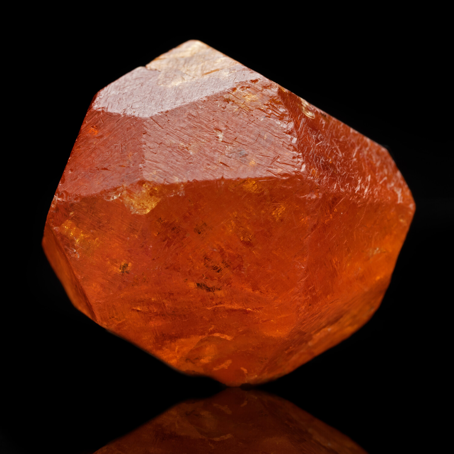 The name of the species of this unbelievably gemmy, saturated, electric-hued tangerine garnet comes from the place where it was first discovered: the Spessart Mountains, Afschaffenburg District, Bavaria, Germany. Specimens of this exact near-neon orange are most coveted, and this is a prime example with minimal contact and incredible vibrancy. This piece is out of Merelani Hills in Tanzania.