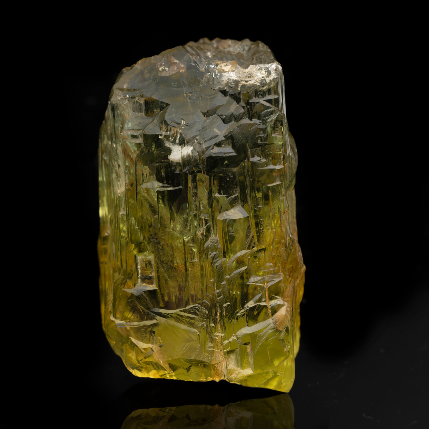 This gorgeous, naturally and characteristically etched Ukrainian heliodor features stunning, gemmy clarity and greenish-yellow coloration. A substantial acquisition, this specimen will shine in any collection.