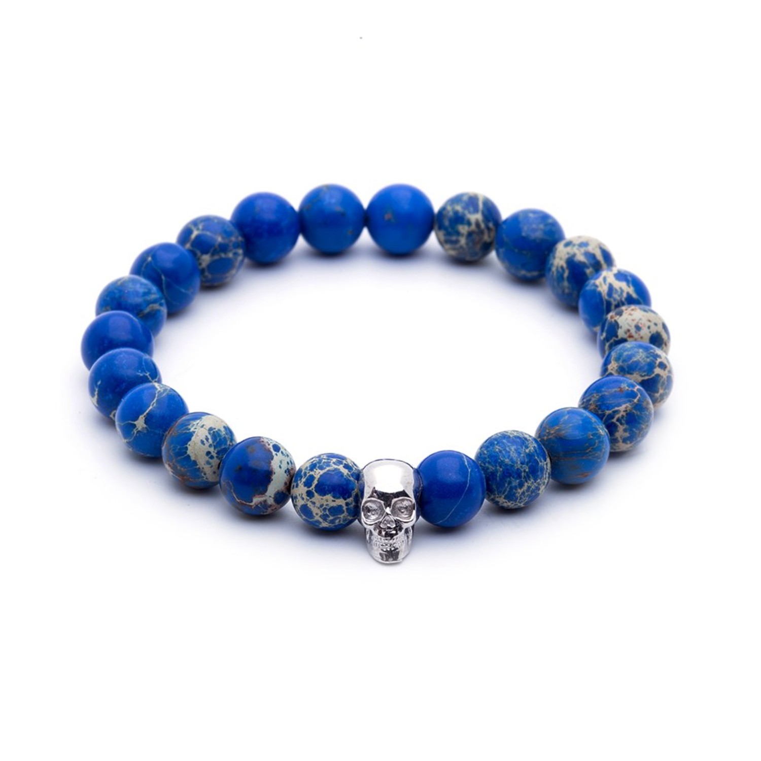 18kt White Gold Skull + Blue Sea Sediment Jasper String Bracelet