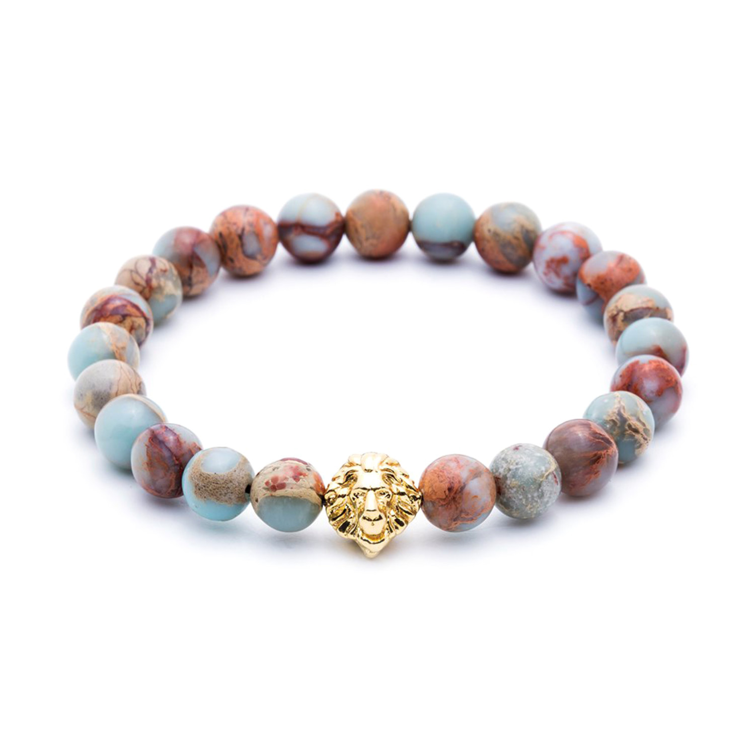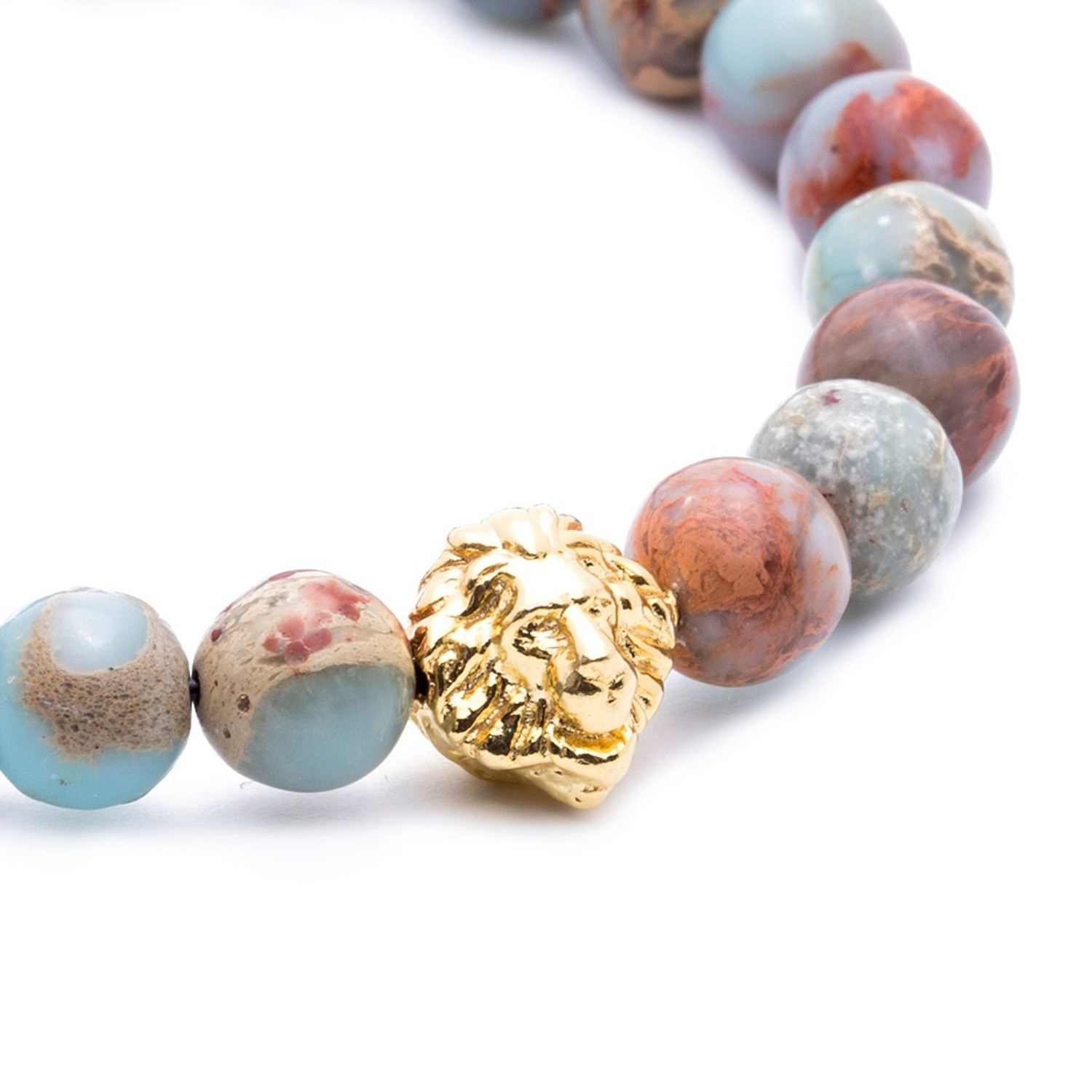 18kt Yellow Gold Head of Lion + Aqua Terra Jasper