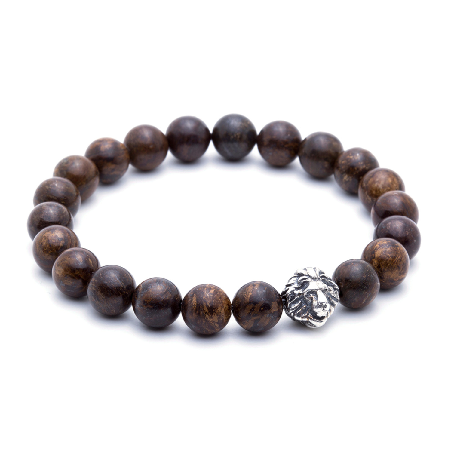Sterling Silver Head of Lion + Bronzite Charm Bracelet