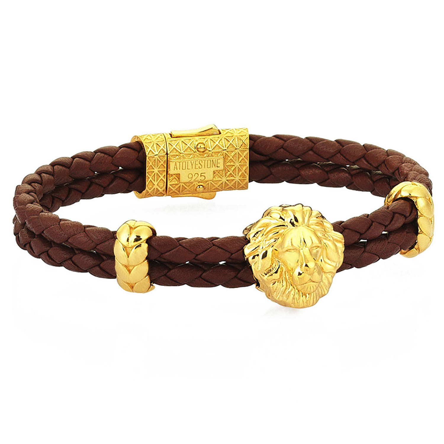 The Atolyestone Nappa Leo Bangle Bracelet is made of 925 sterling silver with yellow gold plating. The brand's trademark leo is coupled with premium quality nappa leather for an elegant and classy design. This bangle comprises of a lock for ease of use, embroidered with the signature Atolyestone logo.
