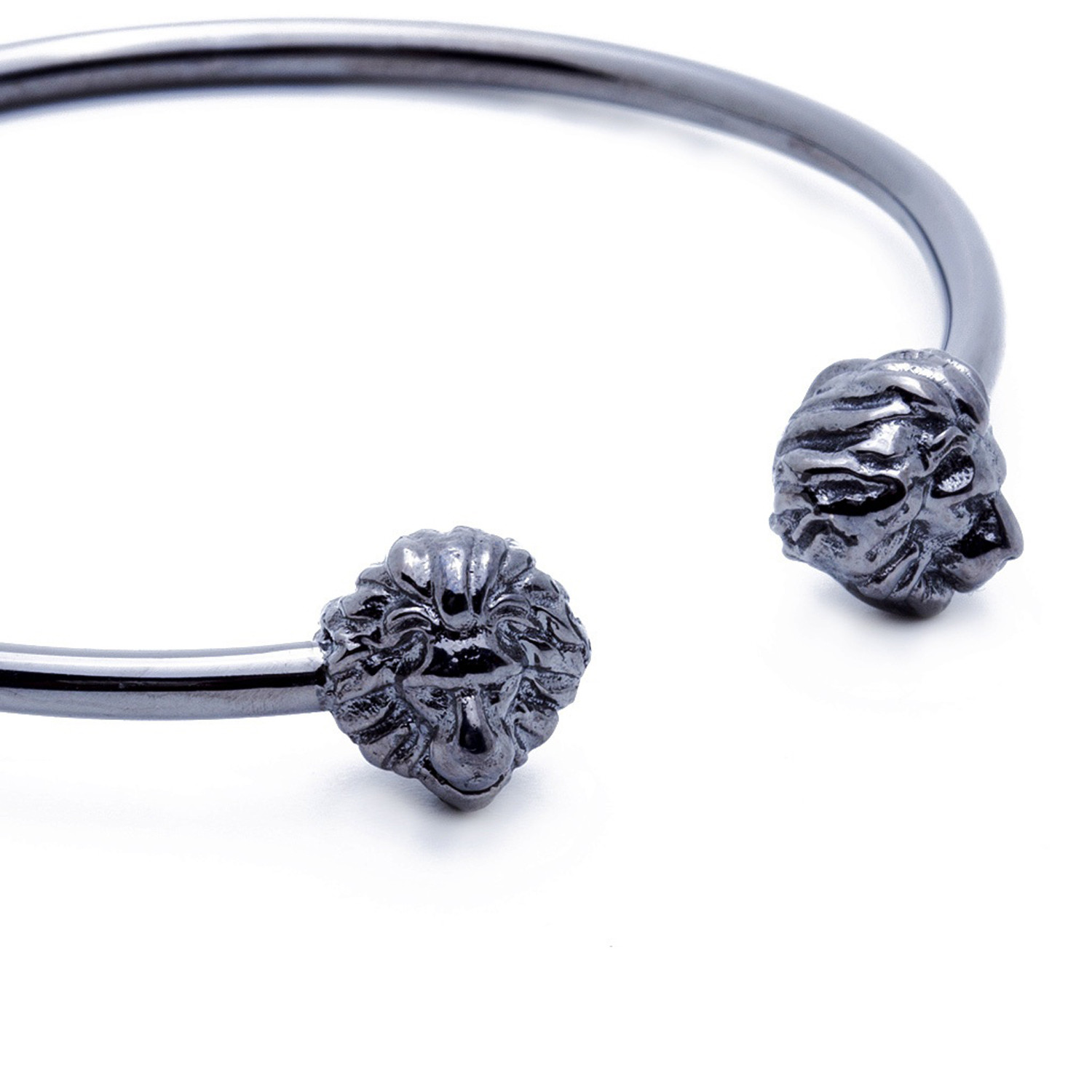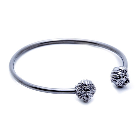 —Sterling Silver Bracelet With Sterling Silver Twin Head of Lion