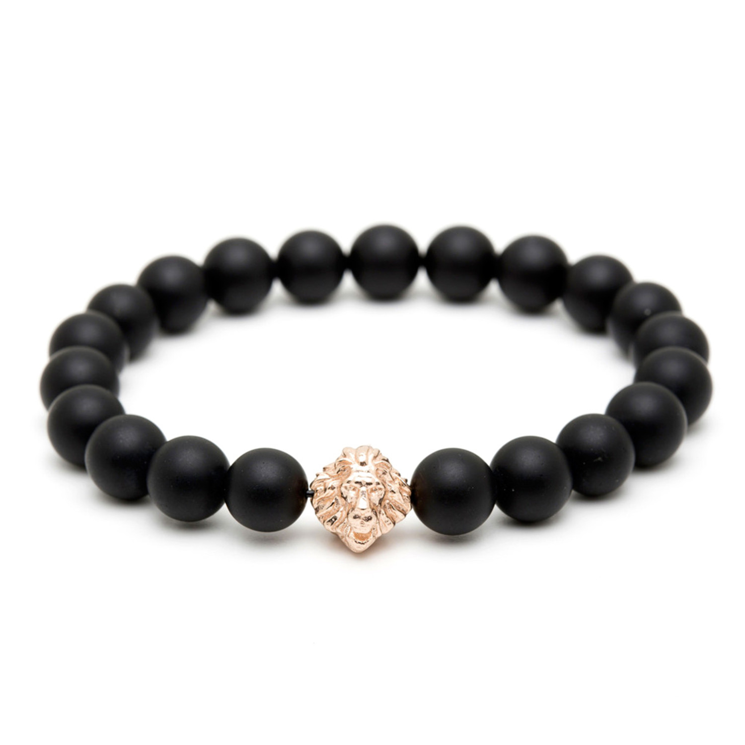 18kt Rose Gold Head of Lion + Matte Onyx Charm Bracelet