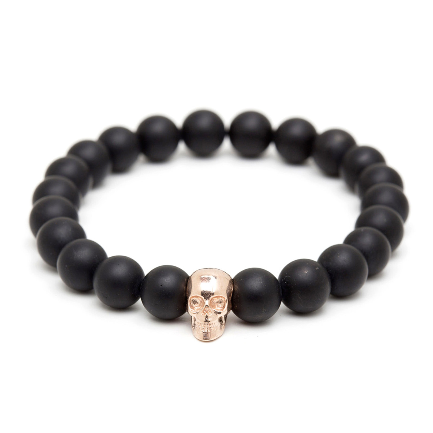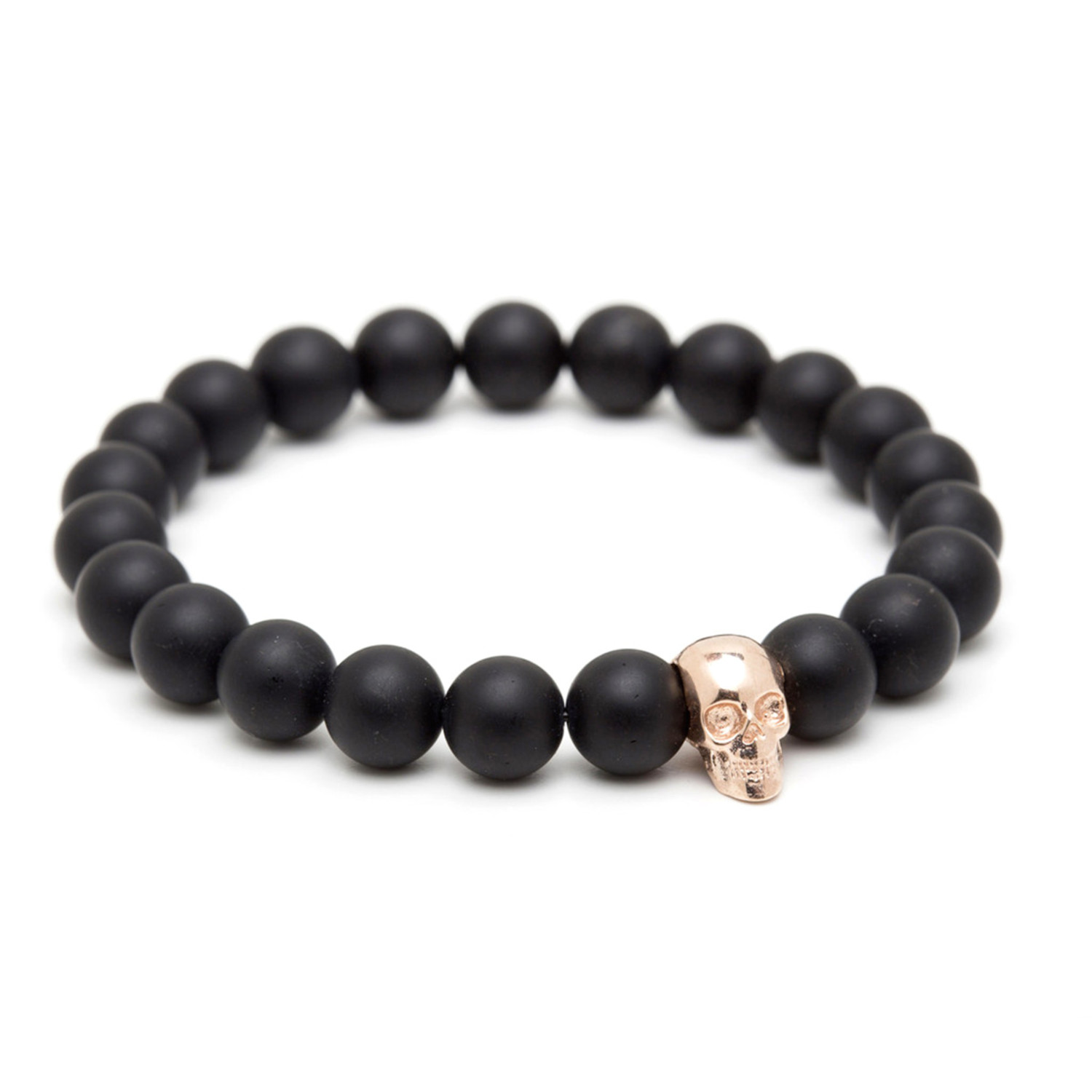 18kt Rose Gold Skull + Matte Onyx Charm Bracelet
