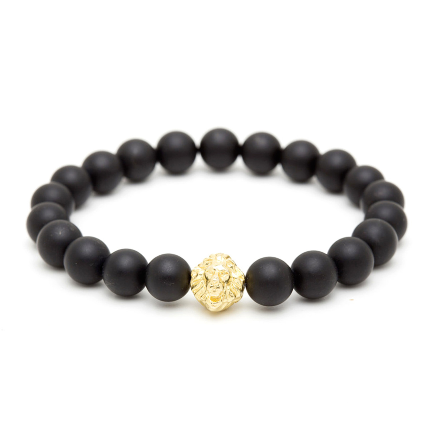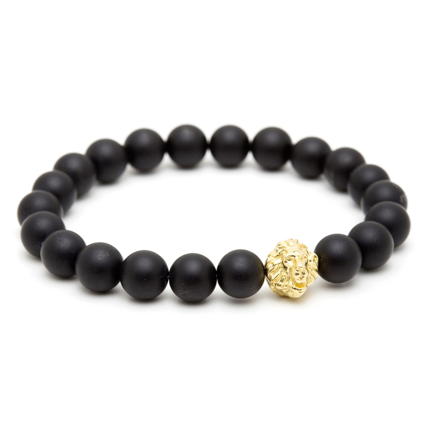 18kt Yellow Gold Head of Lion + Matte Onyx Charm Bracelet