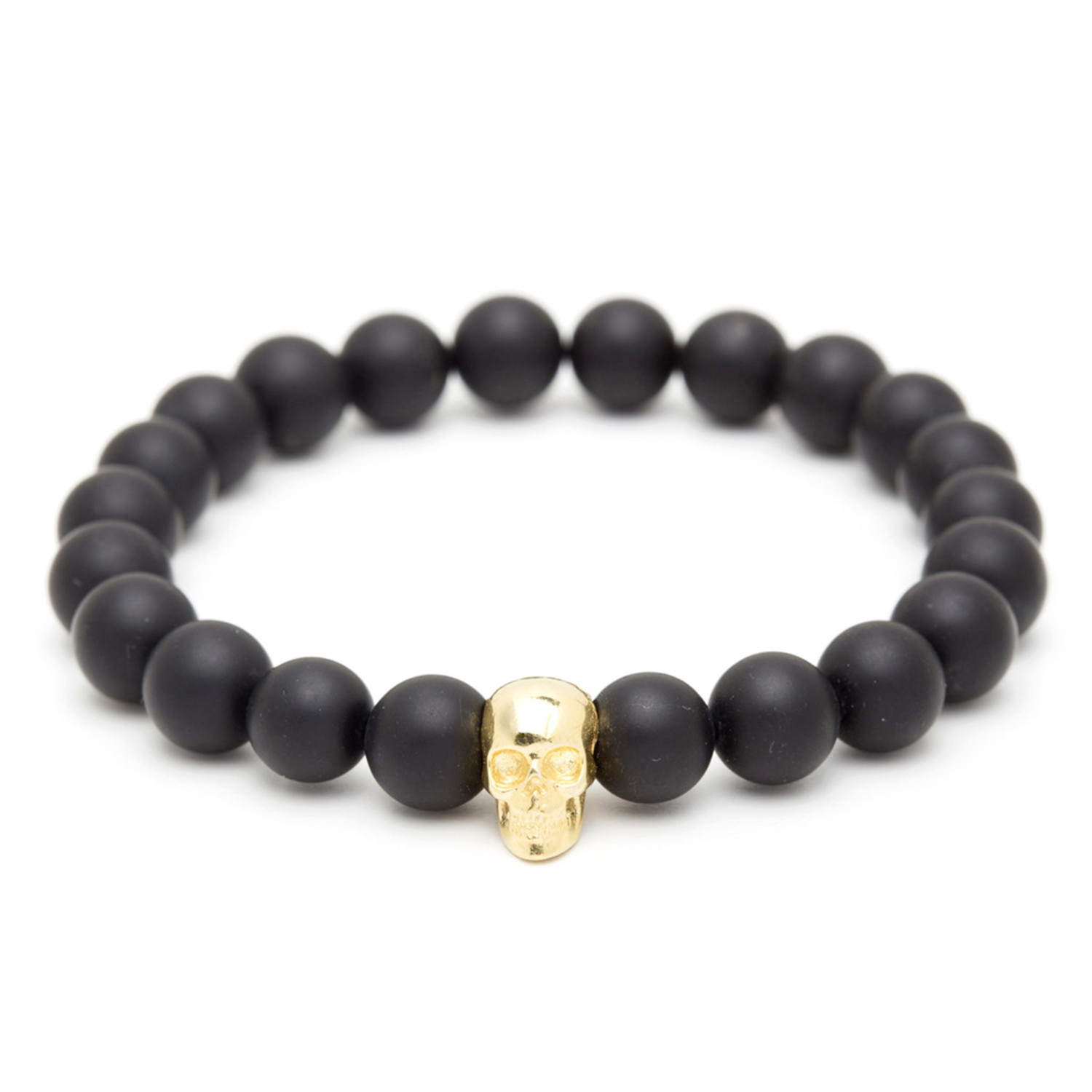 18kt Yellow Gold Plated Skull + Matte Onyx