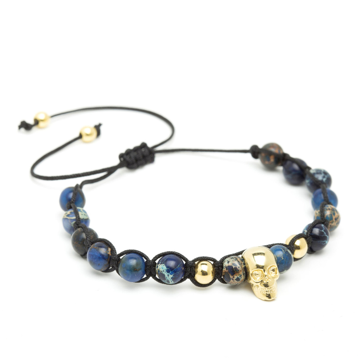 18kt Yellow Gold Skull + Blue Sea Sediment Jasper String Bracelet