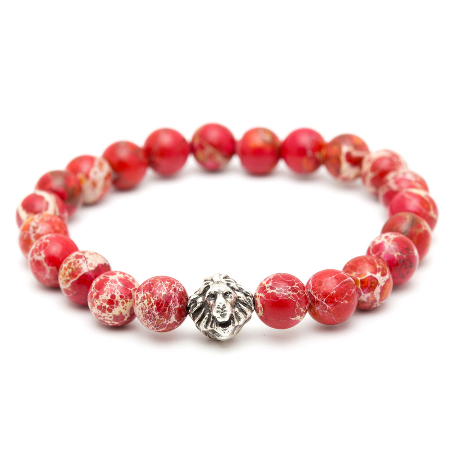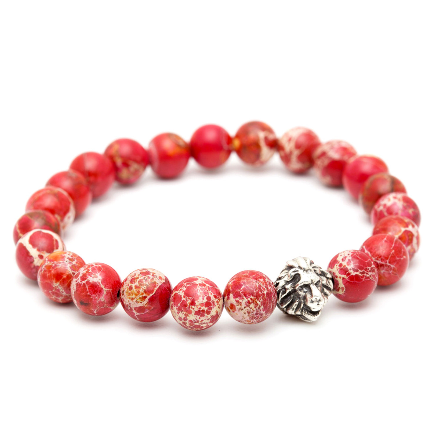 Atolyestone // Red Sea Sediment Jasper + Sterling Silver Head of Lion Charm Bracelet