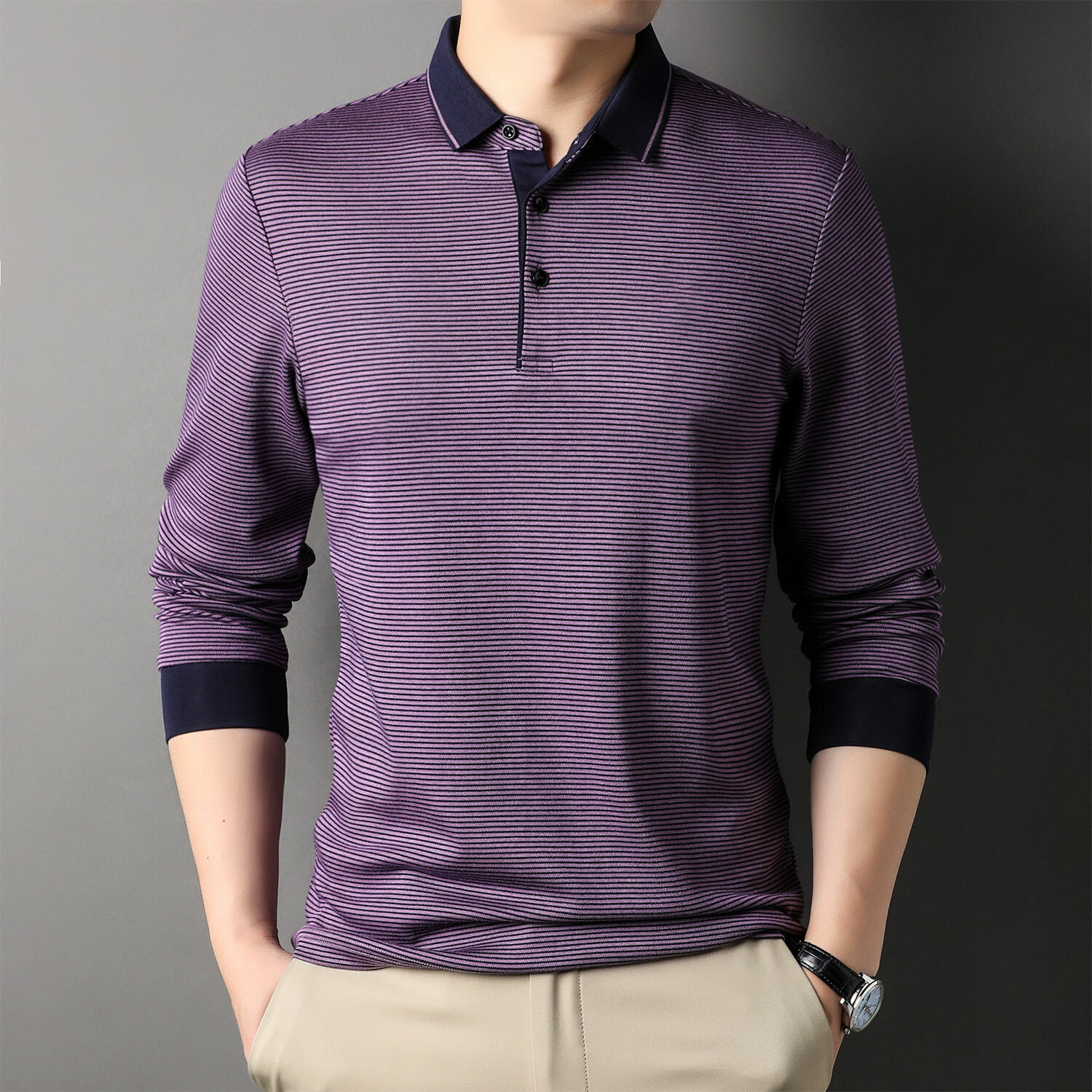 Alvin Striped Long Sleeve Polo // Purple