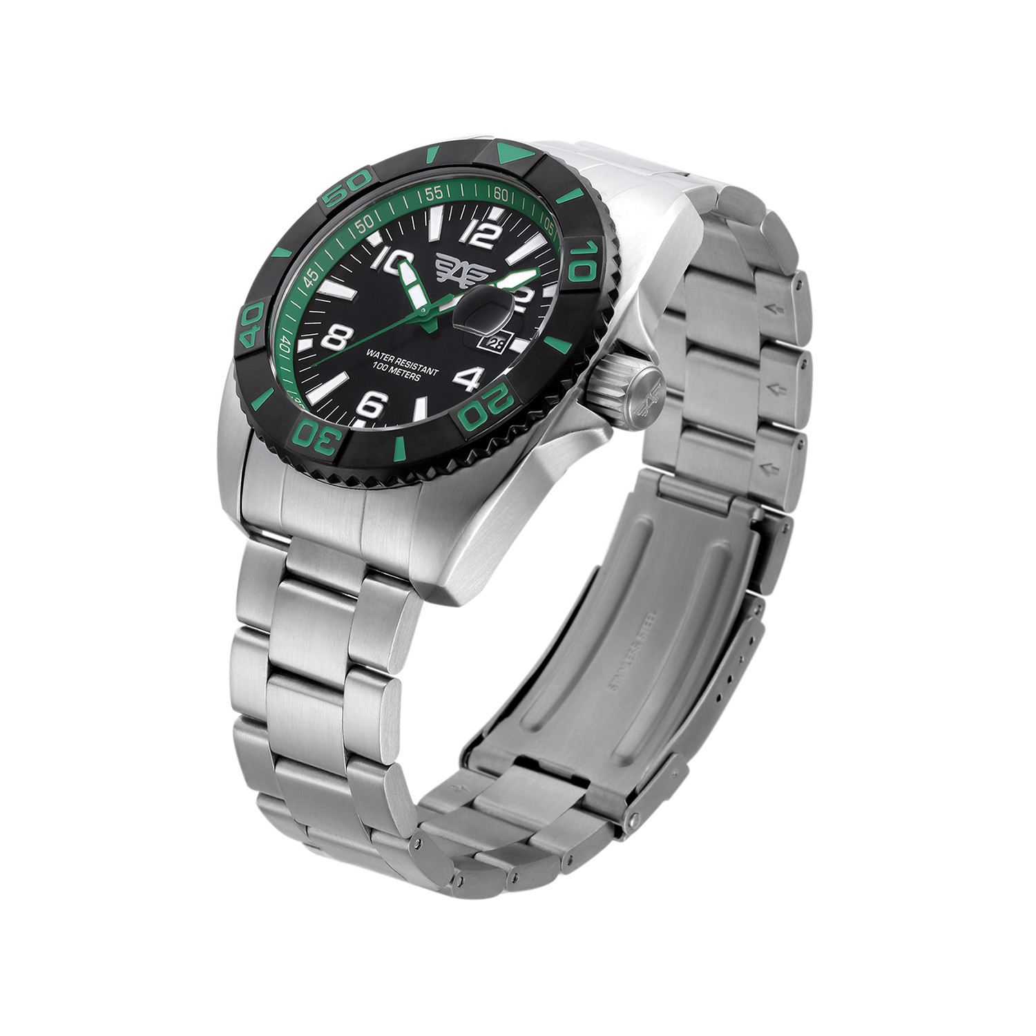 Aquarius is a constellation and an astrological sign, representing air with a liberal dose of water. It's the perfect name for this Aquarius Quartz, which has both a lightweight look and a water resistance to 10ATM. A date complication and functions including a push/pull crown and Arabic and stick markers complete its complex construction.