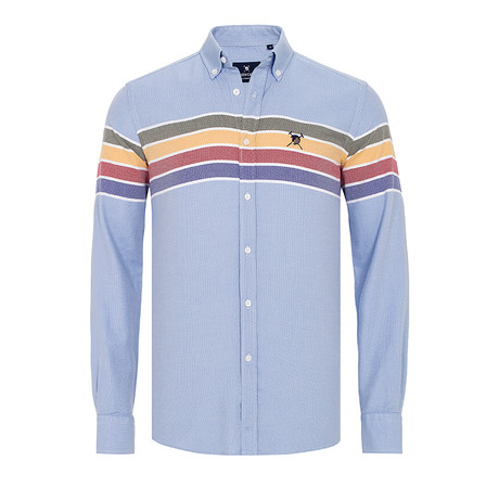 Auden Cavill // Three Stripe Button-Up Shirt // Blue