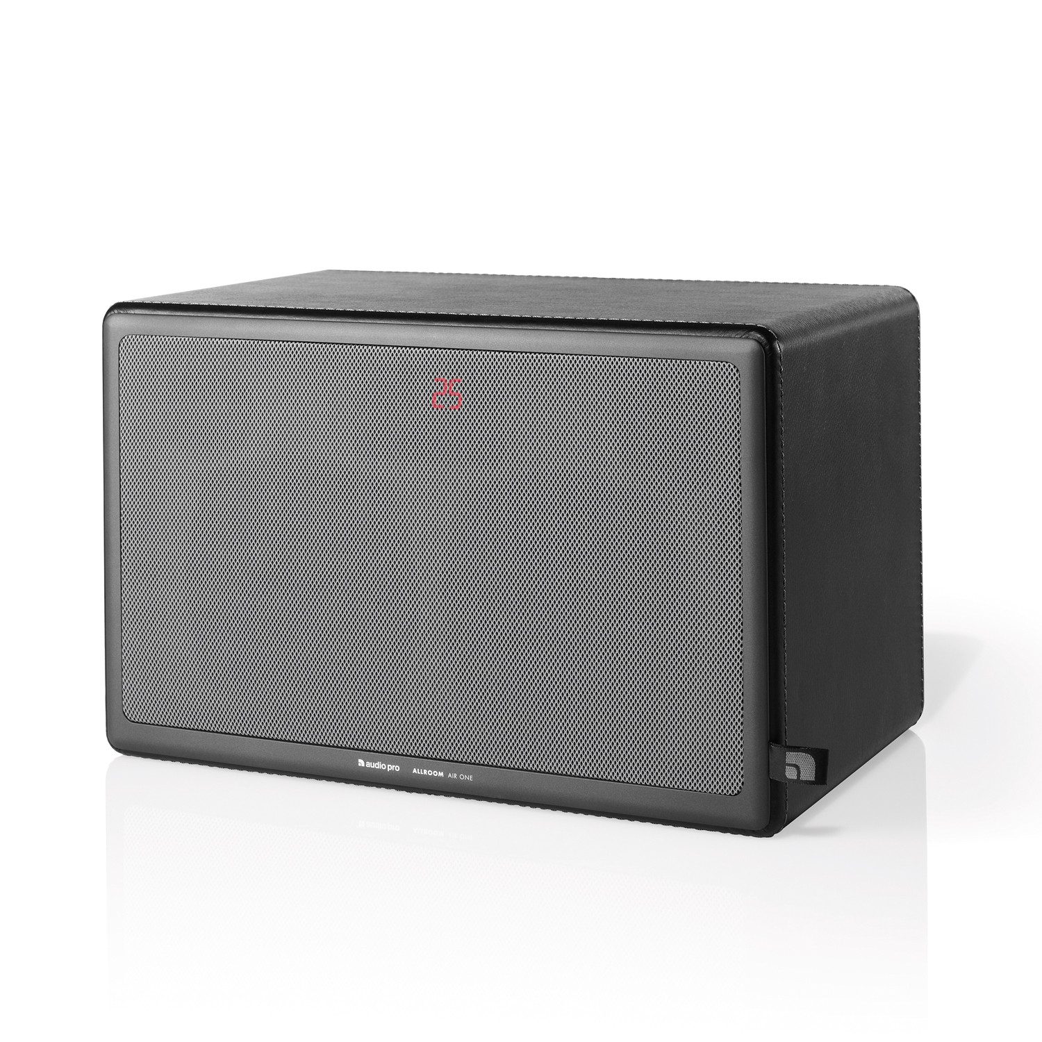 With an elegant Scandinavian design, extraordinary sound and wireless AirPlay functionality, the Allroom Air One in Black has it all. This award-winning stereo loudspeaker is equipped with DLNA technology and can be used with all Apple and Android devices. Its unique "direct link" feature allows for use with or without a wireless network. You can also connect to flat-panel TVs, USB-connected devices, and stereo analog.