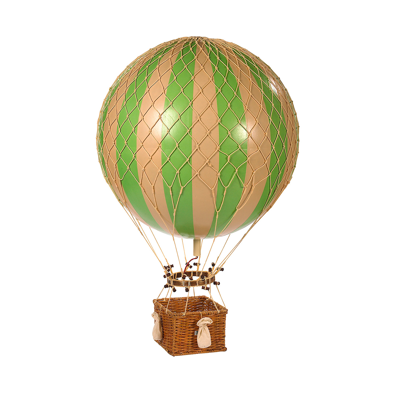 Iconic and inspiring helium filled balloons were one of aviation's first successes. Since 1783, balloons have traveled the skies. This large model comes complete with a rattan basket hanging from hand-knotted netting and wood toggles. The large balloon carries sand bags at the ready for release as ballast.