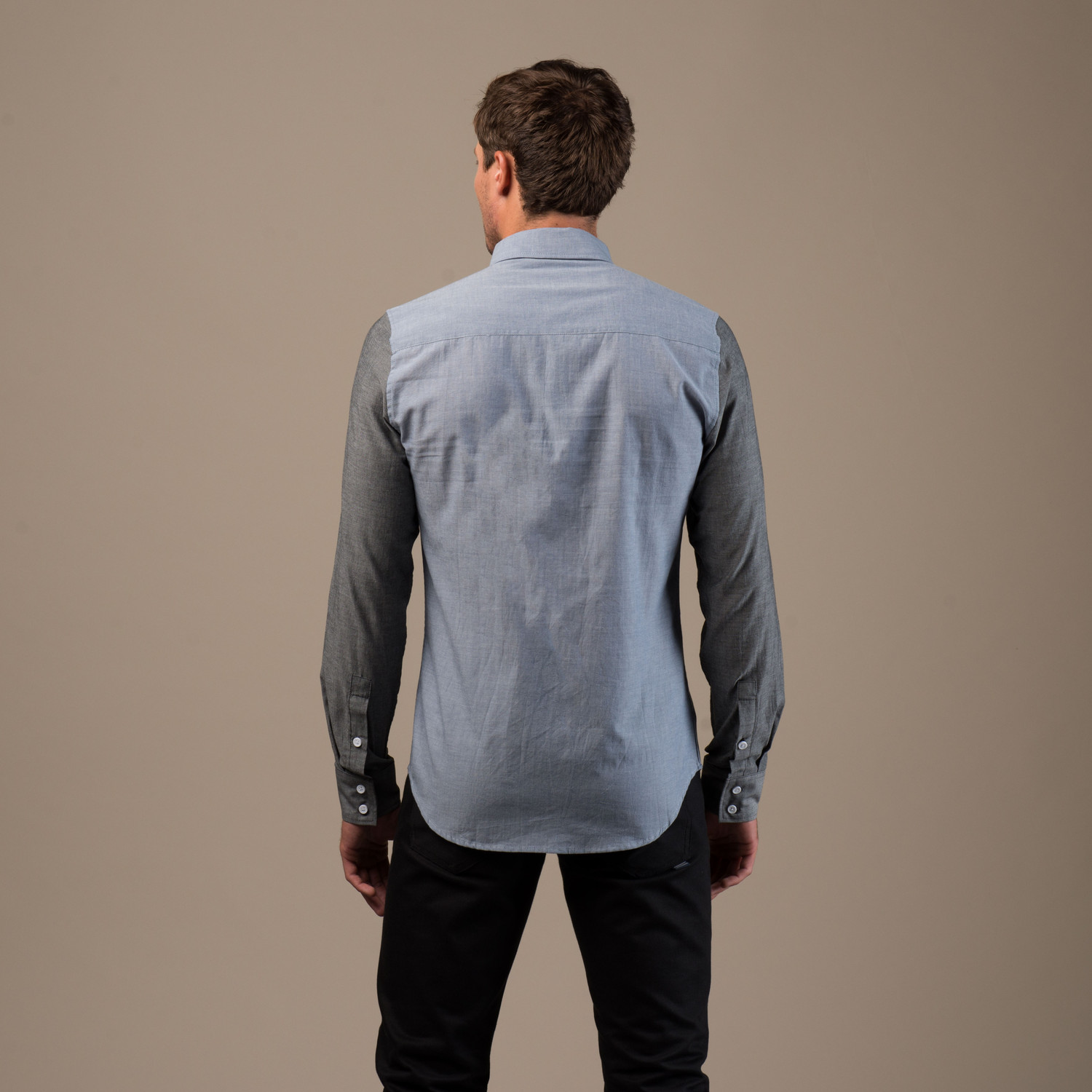 This casual Martin Button Down is a perfect layering piece. With contrasting branded buttons, a button down skinny collar, and a curved hemline, it's appropriate for any season.