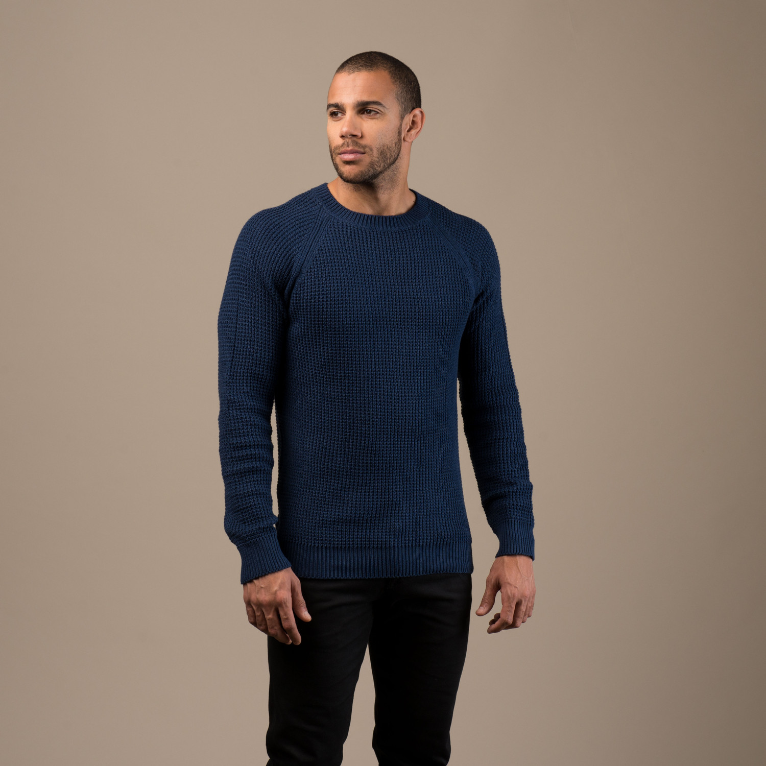 This loosely constructed, chunky Waffle Knit Sweater is made from cotton yarn and features raglan sleeves and ribbed hem. Perfect when layered over a button-up, it adds just the right amount of warmth — with none of the stuffiness.