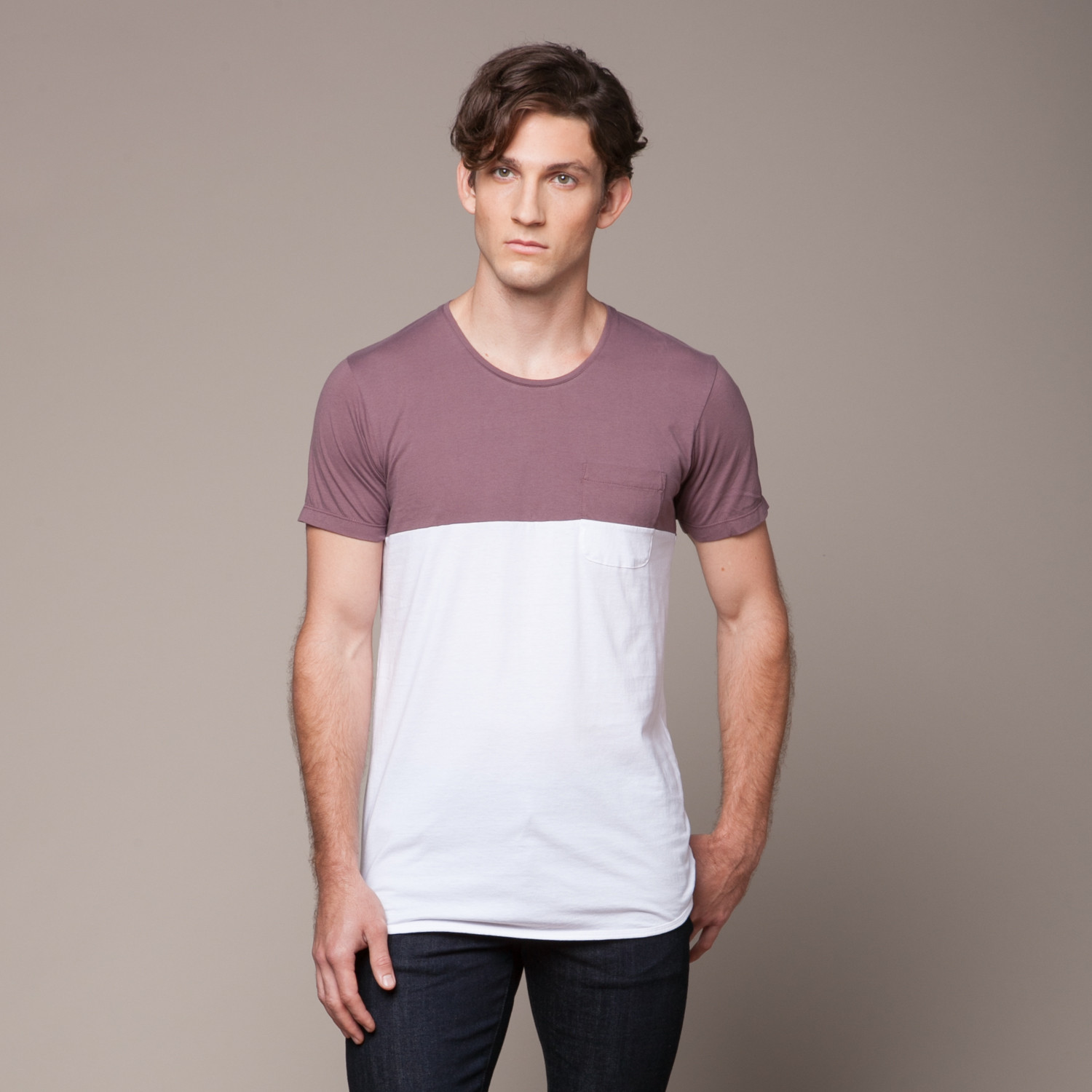 The 2-Tone Pocket Scoop Shirt brings a whole new level of sophistication to your basic tee. Half mauve, half white, and all jersey, the color blocking occurs midway through the chest pocket, adding a subtle bit of flair you'll love. Wear it with richly hued, slim khakis and leather sneakers and you're good to go.