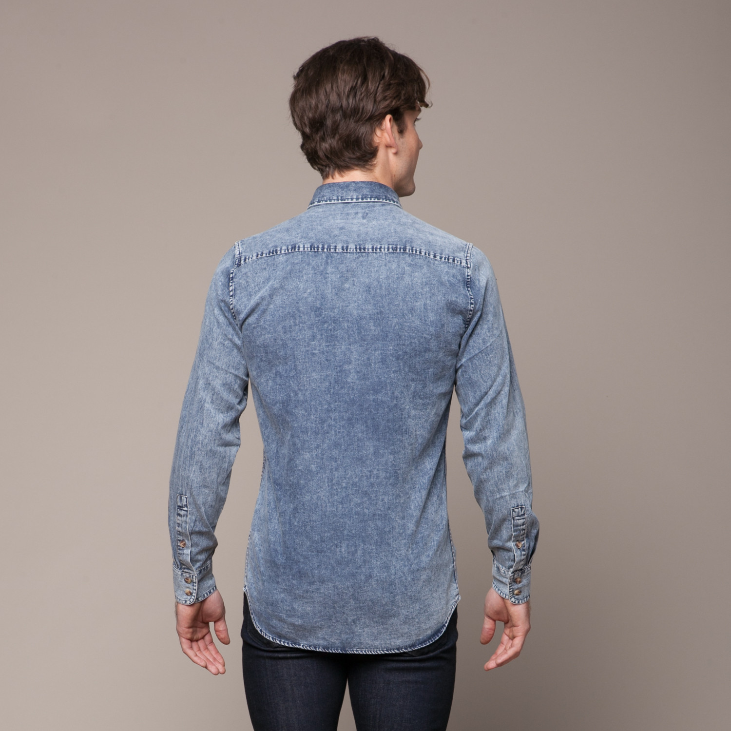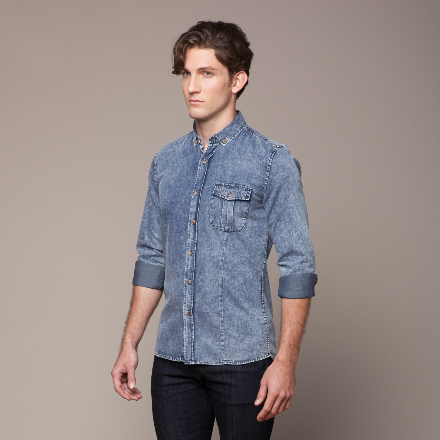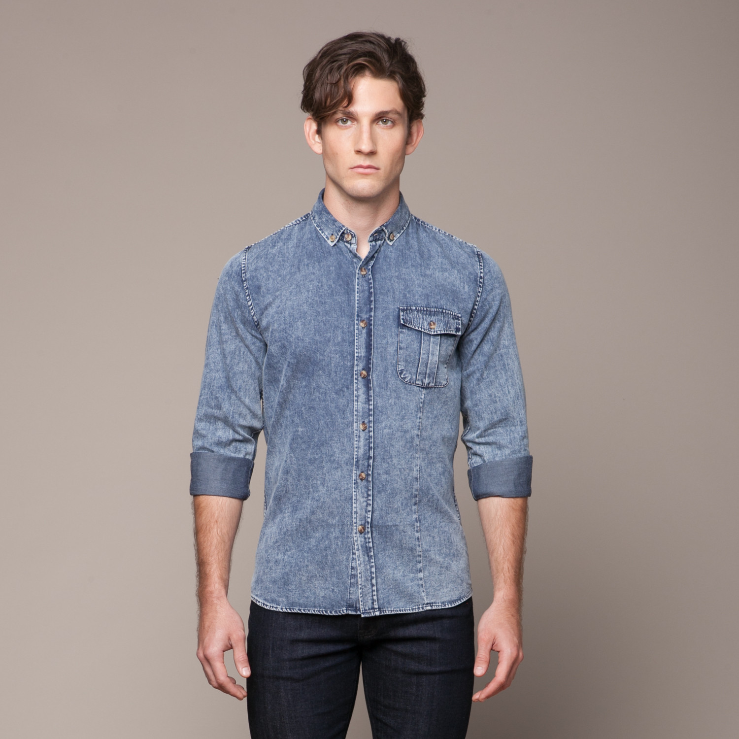 The Indigo Long Sleeve Shirt is a triumph of updated acid wash. Slim, long and highly constructed, it's made in a super lightweight and soft cotton that's engineered to look like denim. The stone wash gives it unique dye patterns, and the contrast buttons and flap pocket add an elevated touch.