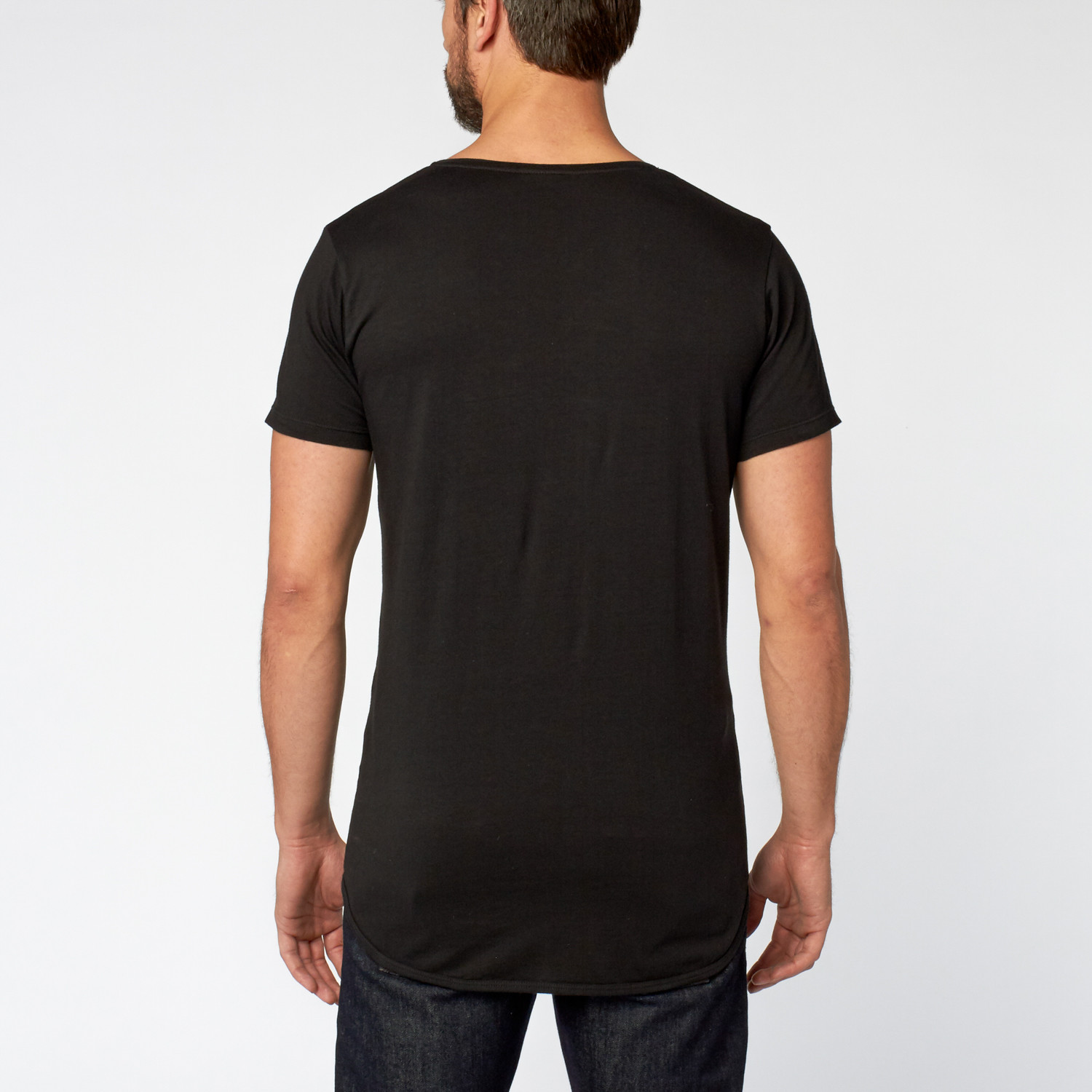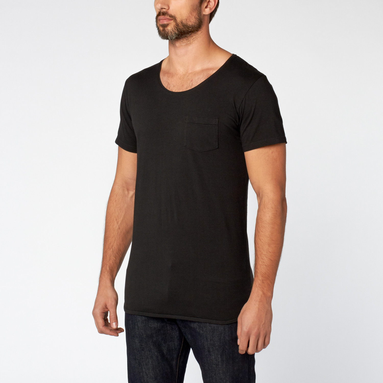 The Jack Pocket Scoop in Black is part of Autonomy's Basics line, and as such it's built for versatility. Well-constructed and flattering, its double-hem crewneck is cut slightly low to show off the collar bone, its hem is rounded in the back, and its chest pocket smaller and squarer than most you'll find. Wear it with anything; it will look great.
