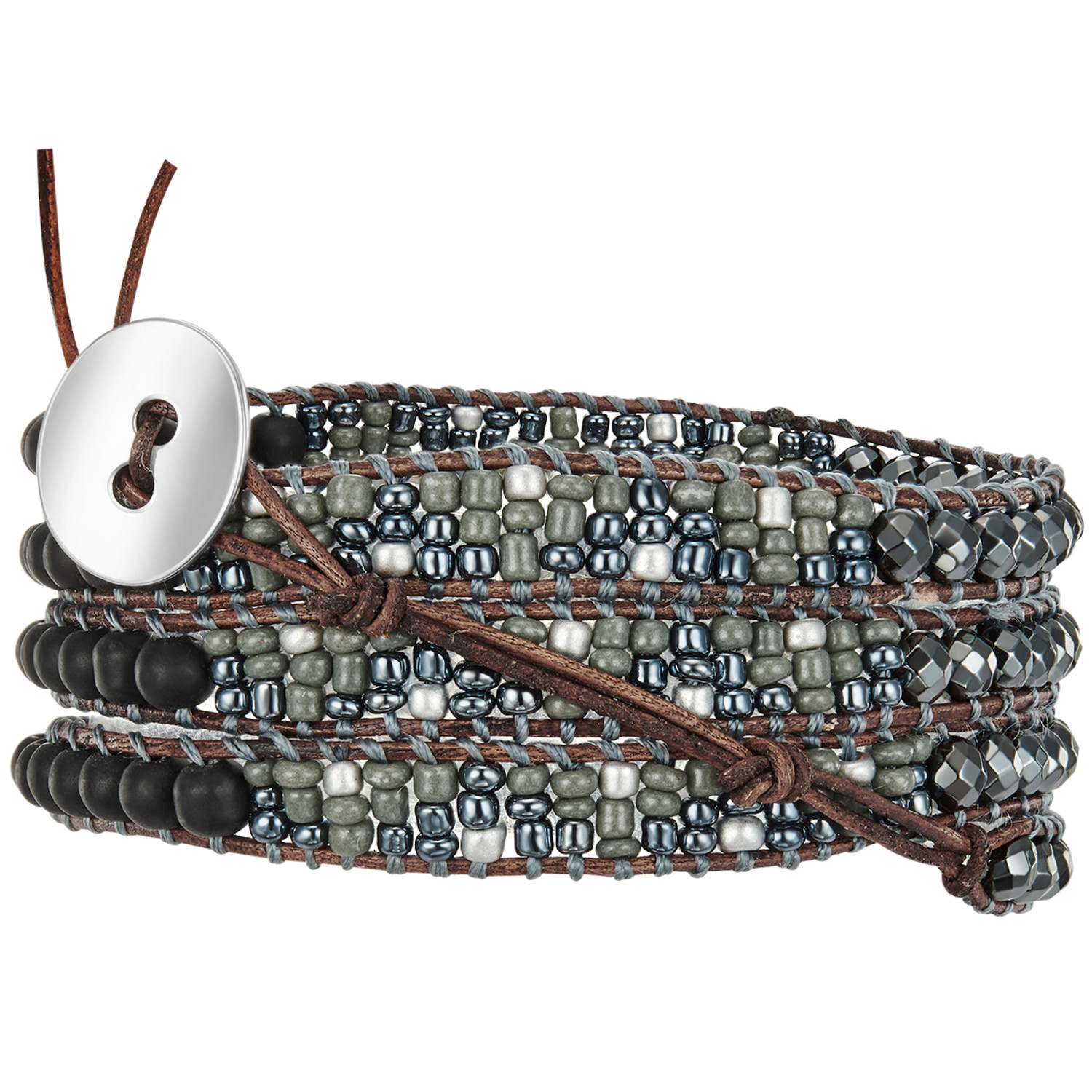 Anthracite Bead Leather Bracelet