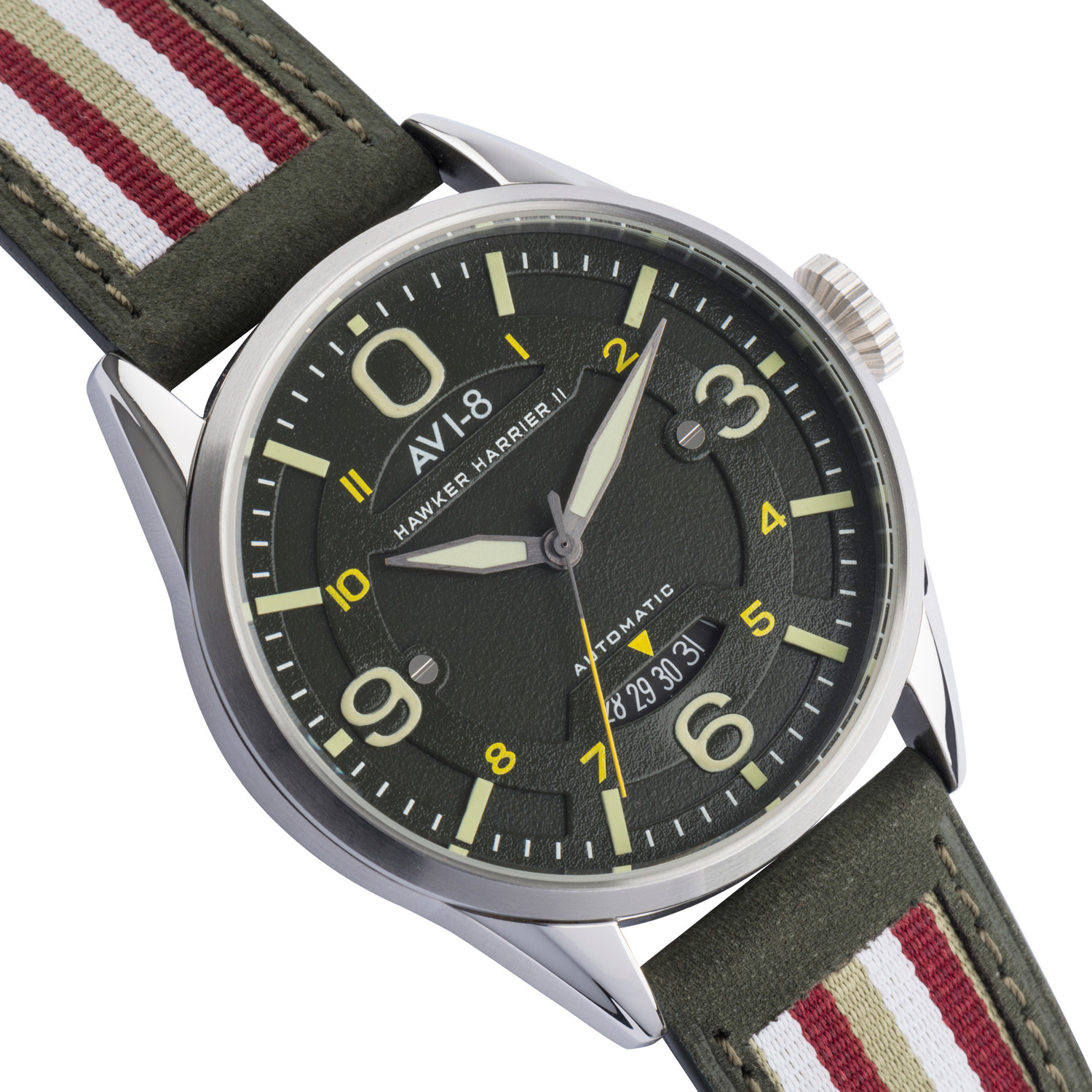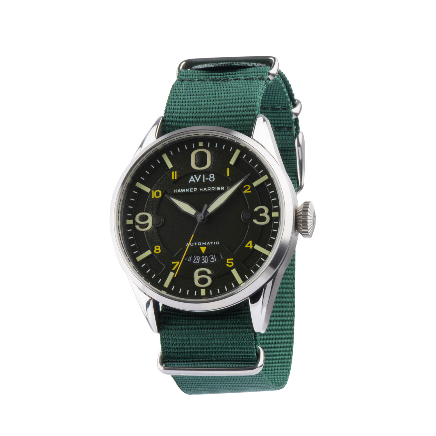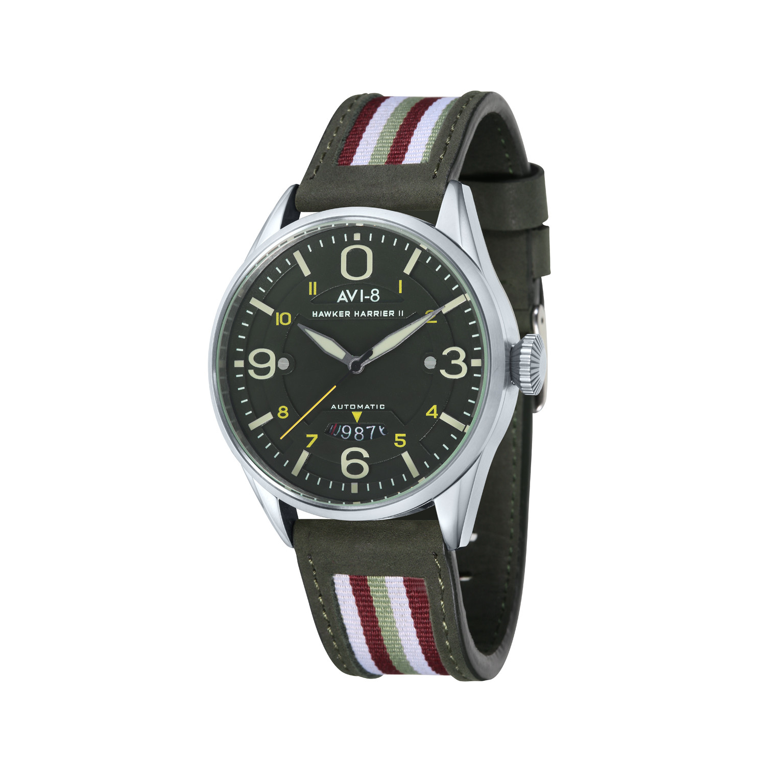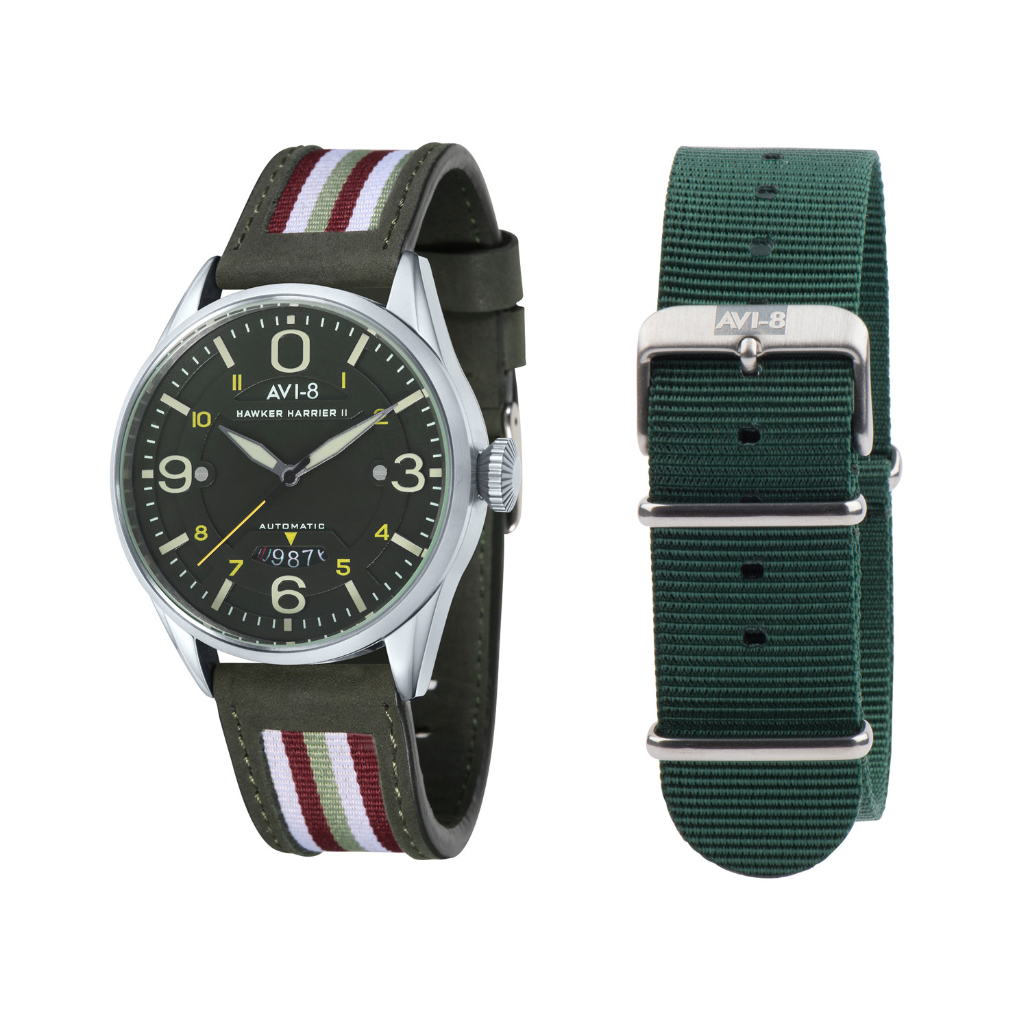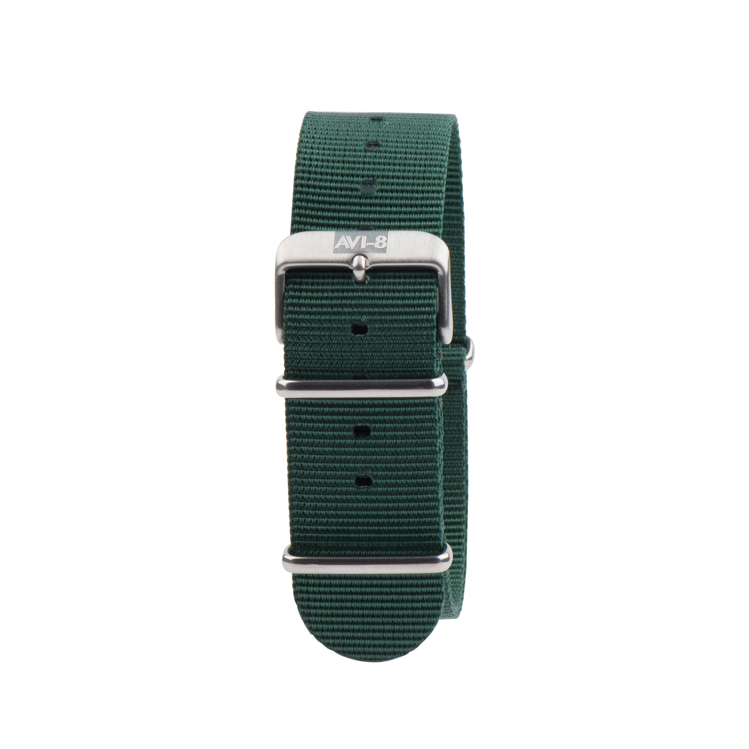 — Green Strip Genuine Leather Strap With Solid Stainless Steel Buckle + Extra Nylon NATO Strap