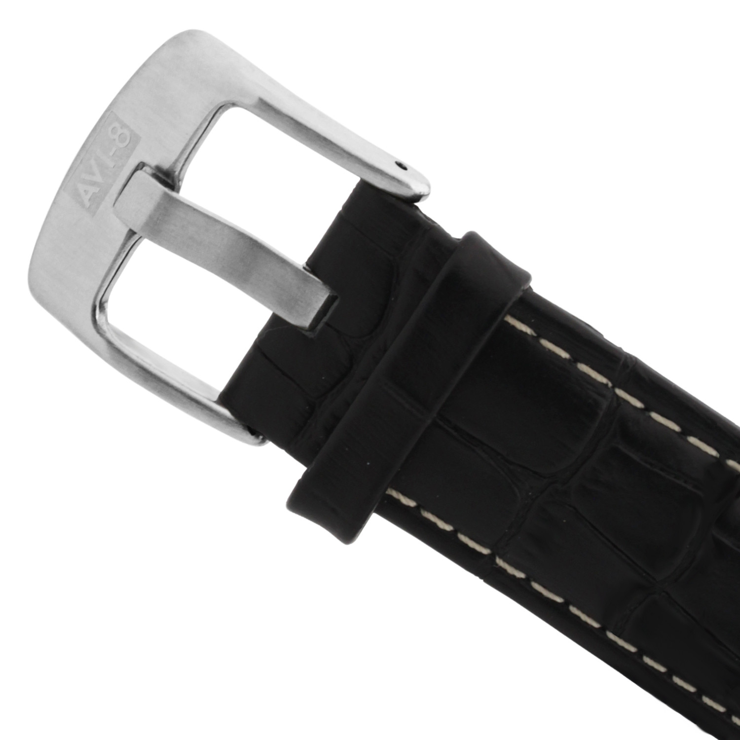 — Black Genuine Leather Strap With Solid Stainless Steel Buckle
