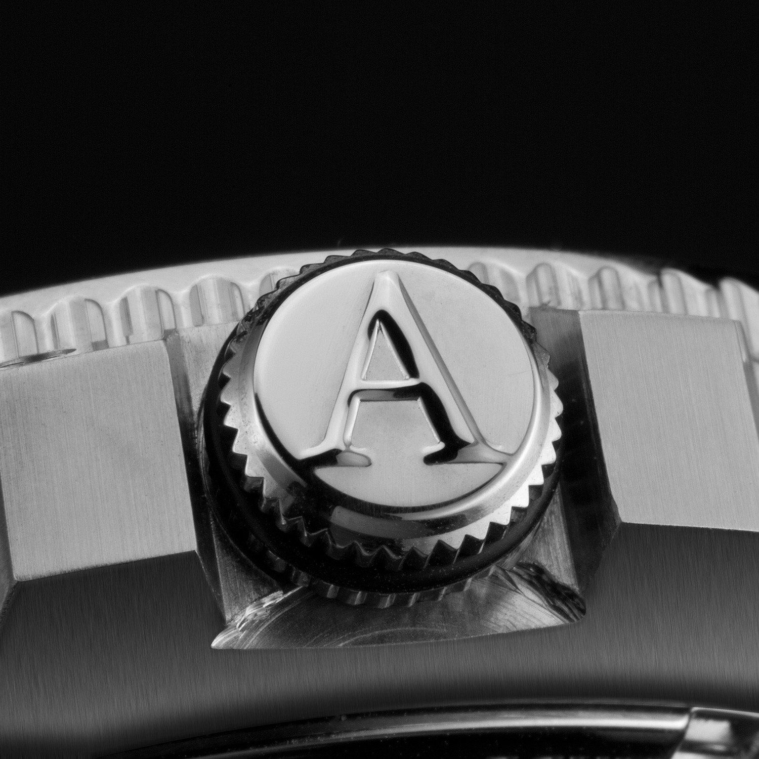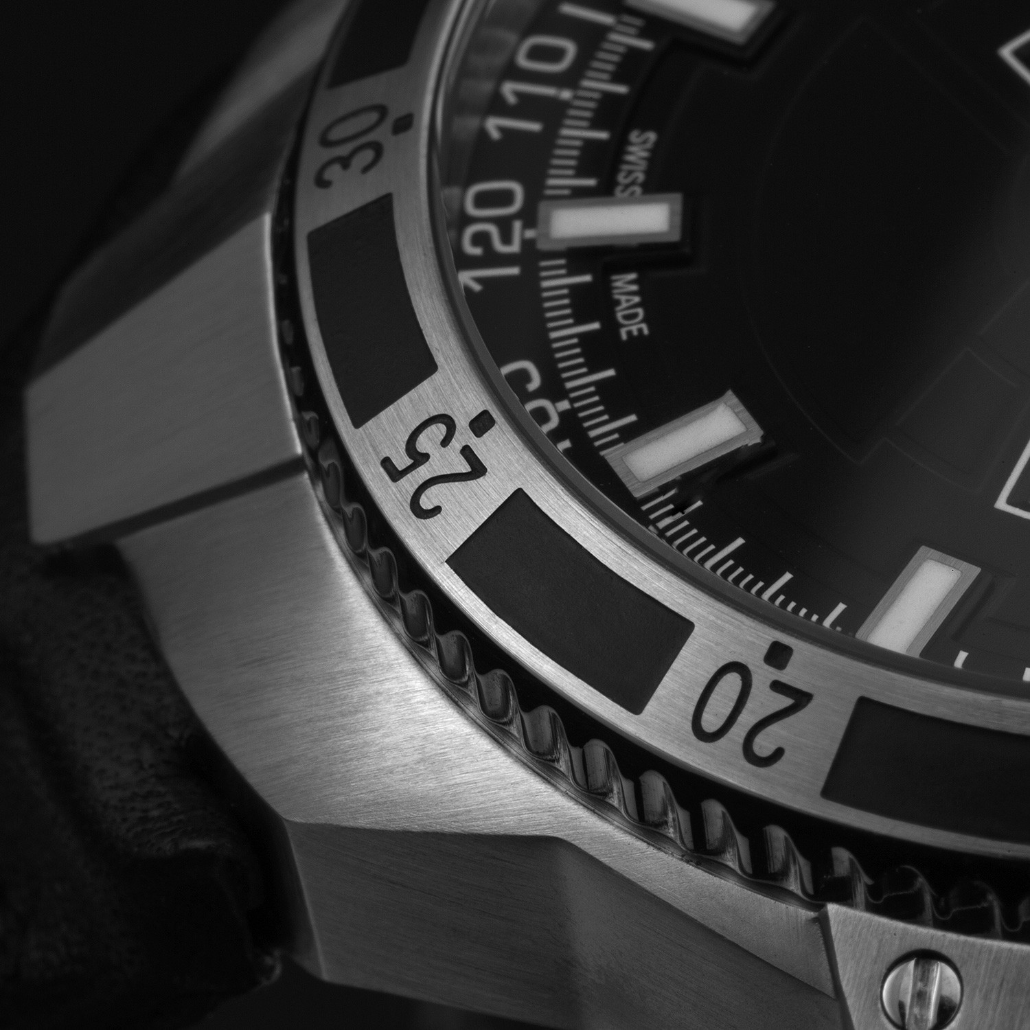The MIG-29 Fulcrum, introduced in the early 1980s, still retains a superior role in the air. Recognized as one of the world’s most manoeuvrable and tough fighter jets, the MIG-29 is brilliantly used for aerobatic purposes. It is the only military plane that can perform the difficult “tail slide”, manoeuvre, which can only be demonstrated by sports aircrafts and the MIG-29 jet. Inspired by the Fulcrum plane’s aerodynamics, Aviator created a watch with a case that is a direct reference to the shape of the Fulcrum’s fuselage. The black-and-white tachometer ring encircling the dial enables the wearer to measure the distance to target, including the conversion of time intervals to speed.