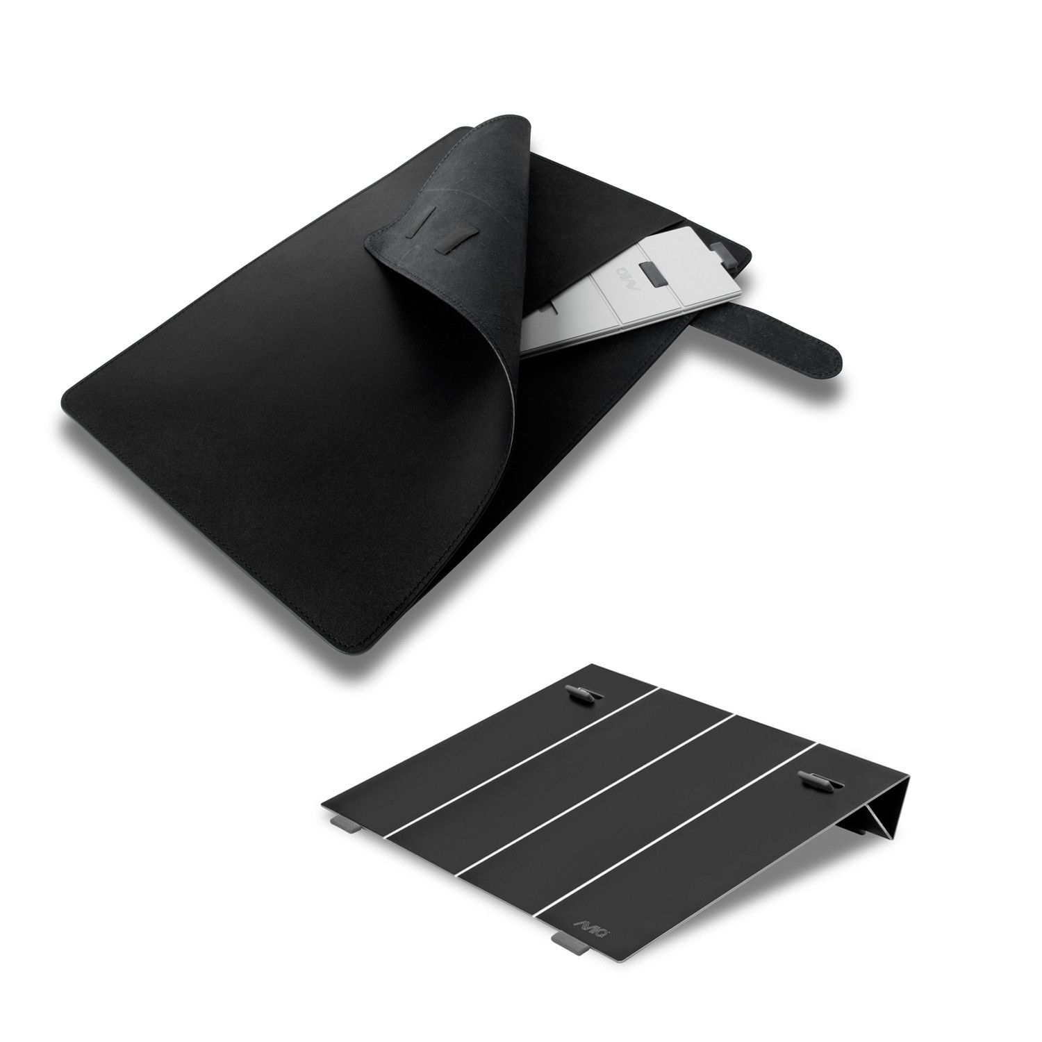 Portable Laptop Stand + Sleek Leather Folio // Black (Black)