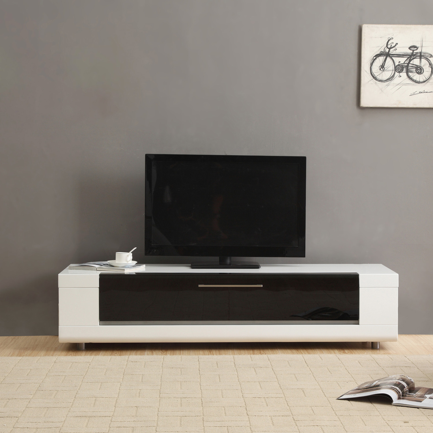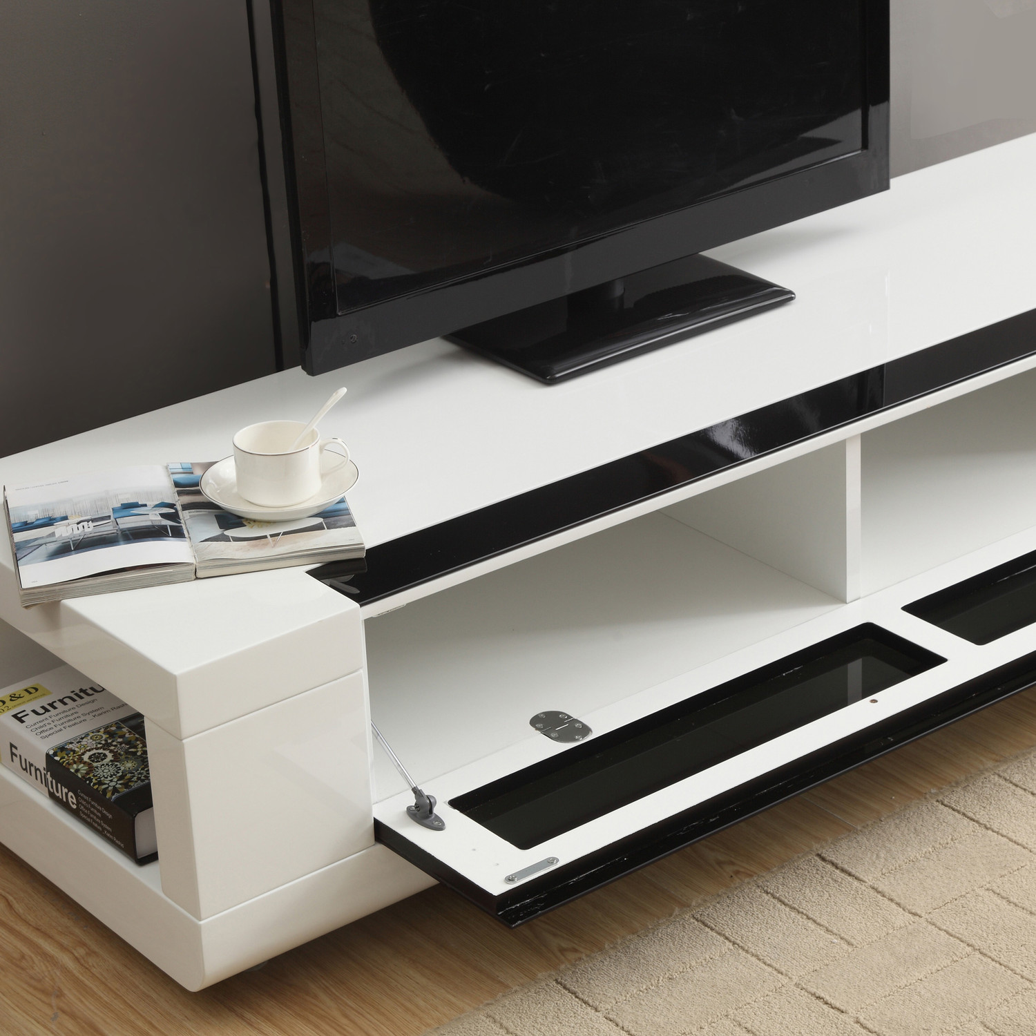 The Editor Remix Mini is the epitome of cutting-edge contemporary design. It's sleek and saucy with a high gloss or matte finish and soft-closing, mirrored, black glass drawers. This low-profile design adds a lovely accent to your space. Featuring an innovative new proprietary technology, the Editor Remix Mini allows you to hide your components while maintaining full use of remote controls.