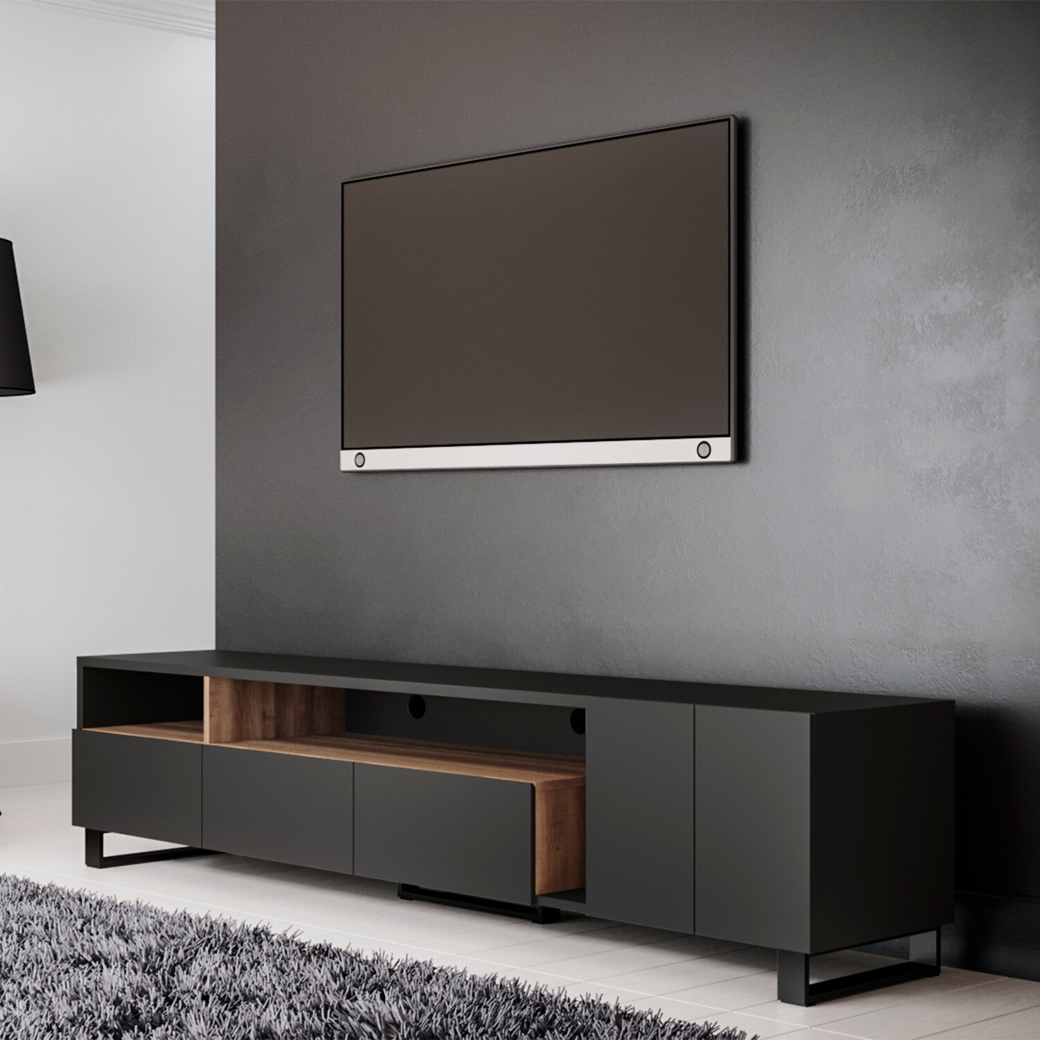 Calligrapher TV Stand // Matte Black + Walnut